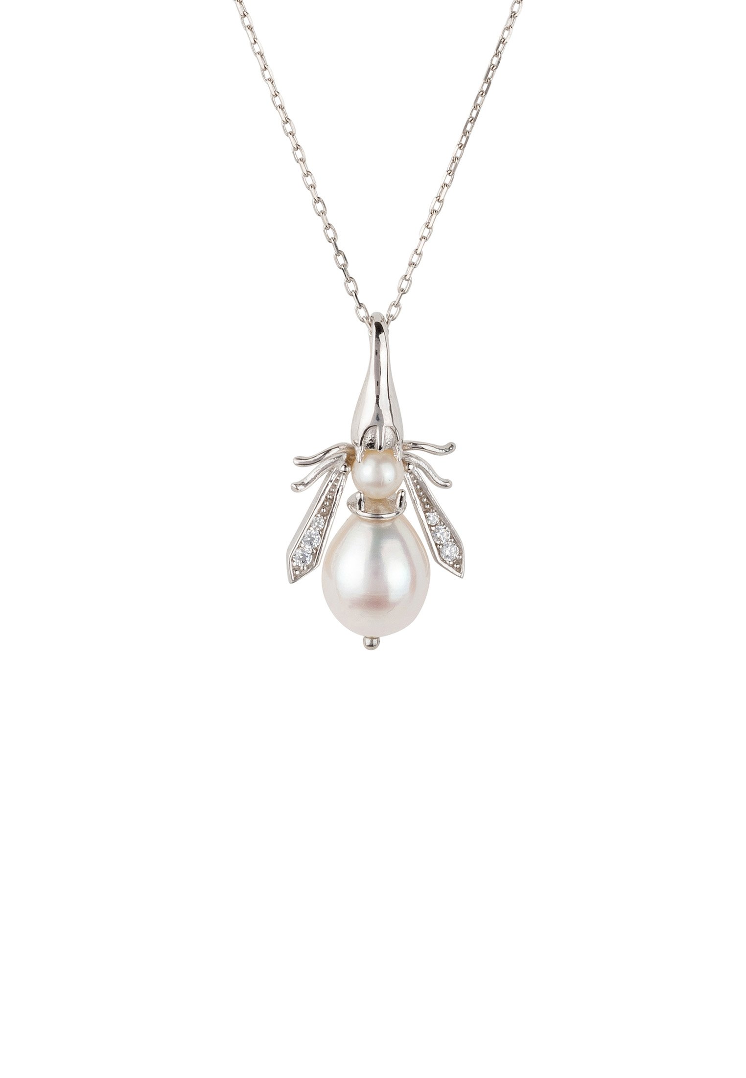 Dropship Pearl Gemstone Honey Bee Pendant Necklace Silver
