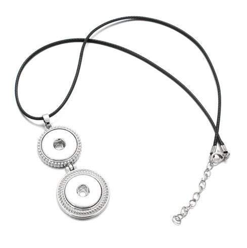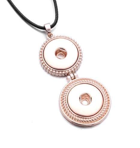 Introducing our exquisite Two Snap Pendant Necklace, available in both silver and rose gold colors. This stunning piece is designed to elevate your jewelry collection while allowing you to express your unique style. The pendant comes with a matching 18" black cord, complete with a 2" extender chain, ensuring a comfortable fit for any neckline. Whether you're dressing up for a special occasion or adding flair to your everyday outfit, this necklace is the perfect accessory.