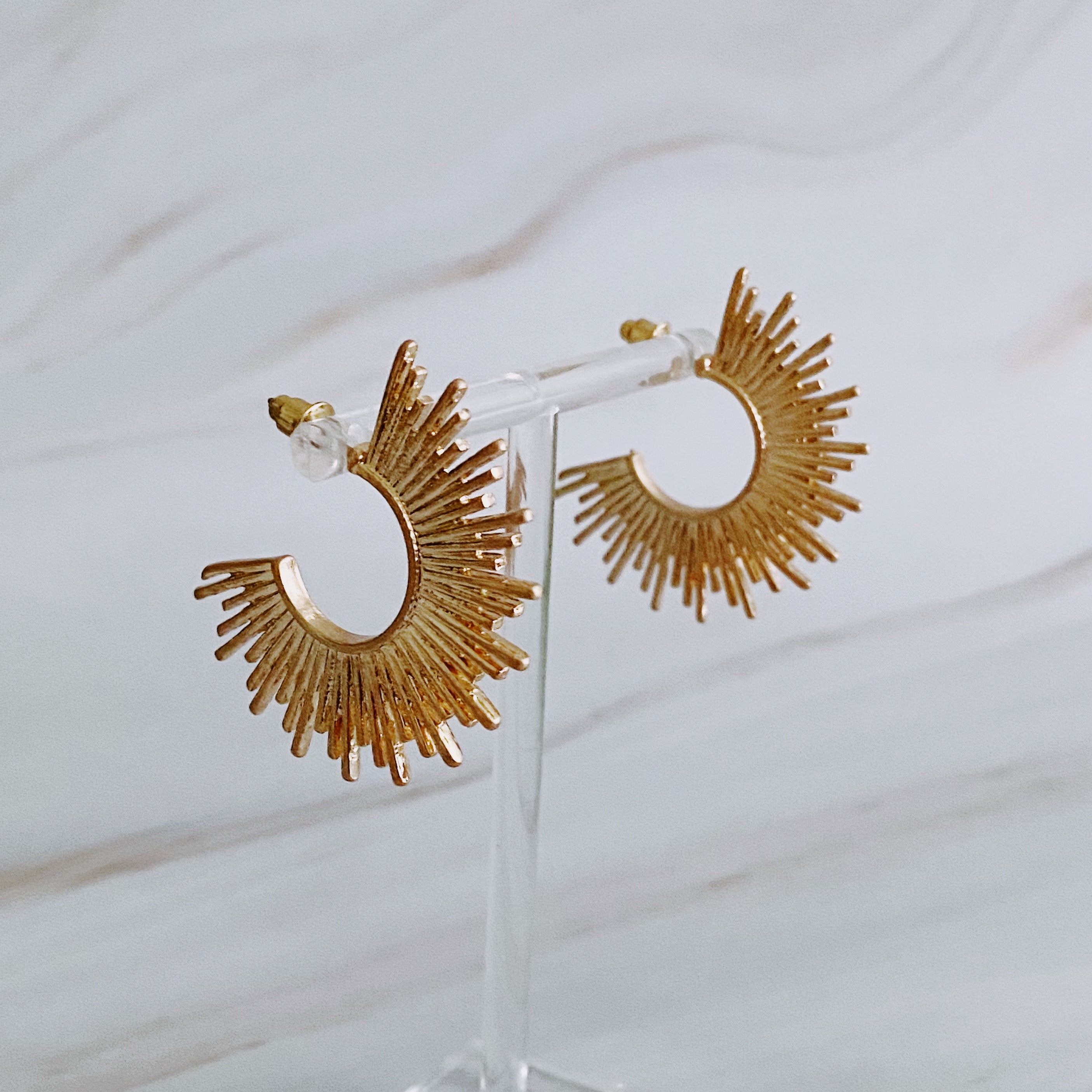 The Pharaoh Half Hoop Earrings are the perfect accessory to elevate your style and add a touch of sophistication to any outfit. With their unique spiky hoop design, these earrings are not just jewelry; they are a statement piece that can transform your look from ordinary to extraordinary. Whether you're dressing up for a special occasion or looking to add some flair to your everyday attire, these earrings are versatile enough to suit any occasion.