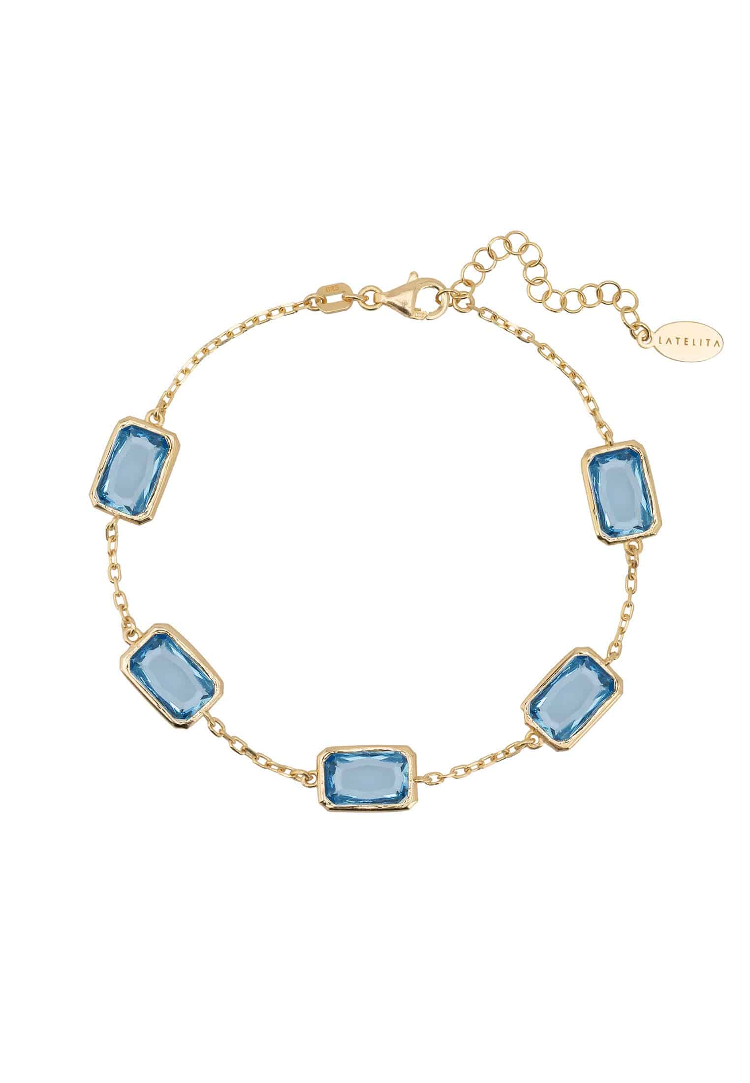 Portofino Bracelet in gold featuring blue Topaz gemstones, elegantly designed with a fine chain and adjustable clasp.