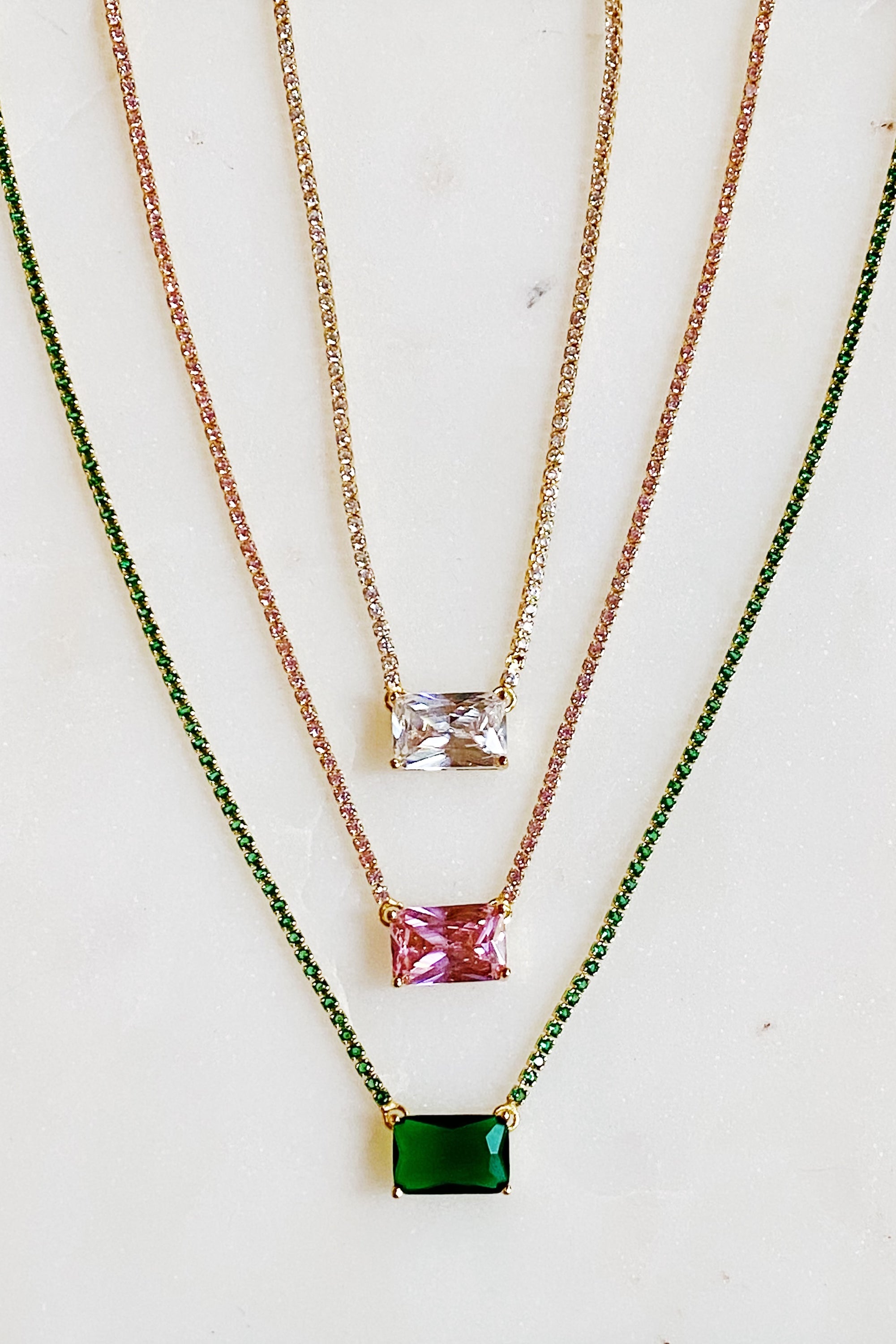 Introducing the Precious Pendant Tennis Necklace, a stunning piece that combines elegance and versatility. This gorgeous necklace features an emerald cut pendant that shines beautifully, making it the perfect accessory for any occasion. Whether you wear it alone for a classic look or layer it with other necklaces for a trendy style, this necklace is sure to turn heads.