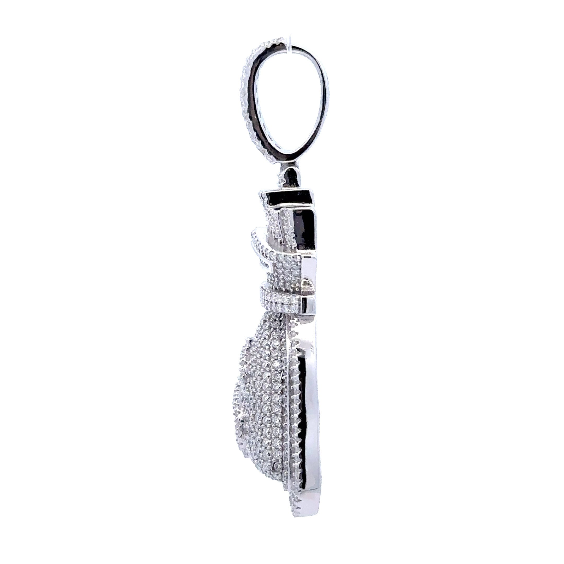 At the heart of this pendant are the dazzling moissanite stones, known for their exceptional brilliance and fire. With a clarity rating of VVS, these lab-created diamonds offer a stunning alternative to traditional diamonds, providing the same sparkle and allure without the hefty price tag. The moissanite stones are complemented by sparkling cubic zirconia, which adds to the overall elegance of the piece.
