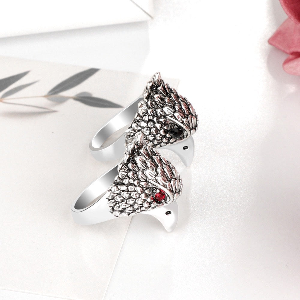 The Red Eye Eagle Ring features a comfortable dimension of 19.8mm, making it suitable for various finger sizes. Weighing only 8.3g, it is lightweight and easy to wear, allowing you to enjoy it throughout the day without any discomfort. This balance of size and weight makes it an ideal choice for both casual and formal occasions.