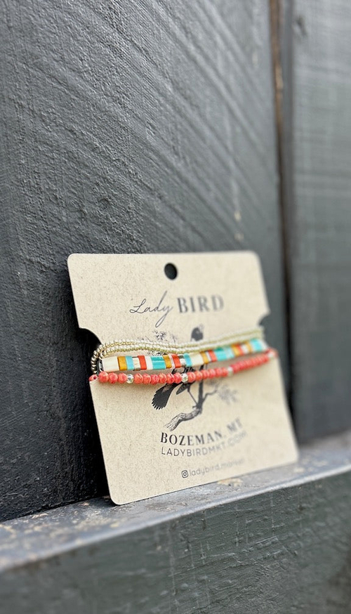 Embrace the retro vibes and add a splash of color to your jewelry collection with our Retro Stripes with Turquoise Tila Bead Stacked Wrap Bracelet Set. It's not just a bracelet; it's a statement piece that reflects your personality and style.