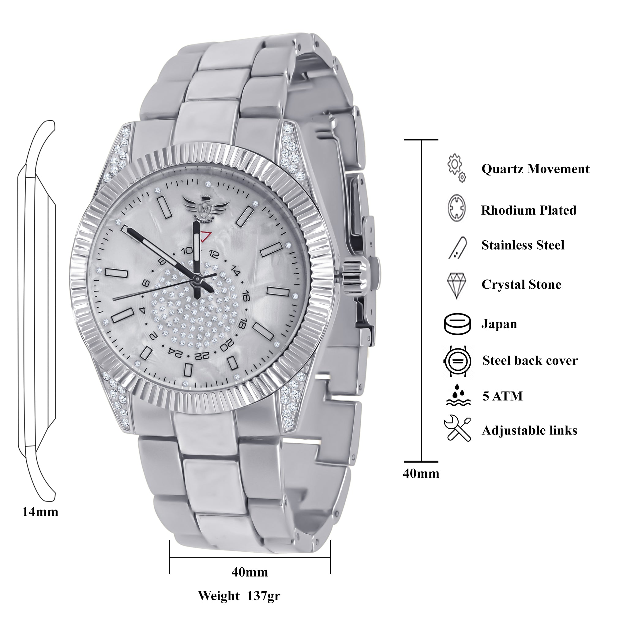 The watch is adorned with a faultless European crystal bezel that adds a touch of elegance and sophistication. This crystal not only enhances the overall aesthetic but also protects the watch face from scratches and damage. The 40 MM length and 40 MM width make it a versatile choice that can be worn by anyone.