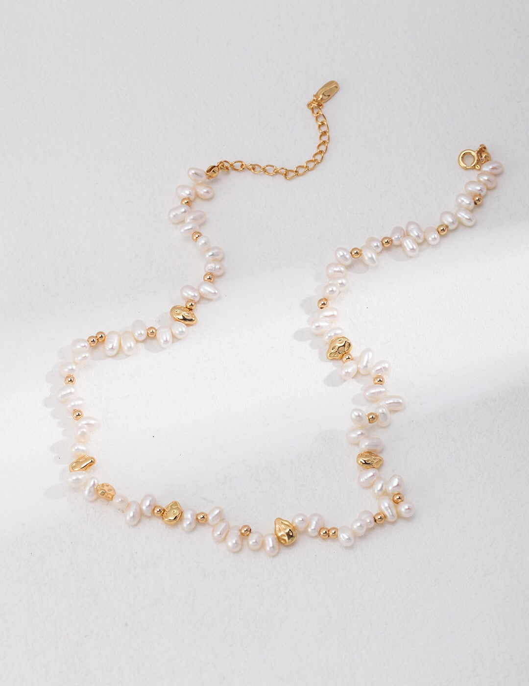 Crafted with care, the Romantic French Style Natural Pearl Necklace showcases the beauty of natural pearls, each measuring approximately 4-7mm. The necklace is plated with 18ct gold vermeil over sterling silver, ensuring durability and a radiant shine. The combination of these high-quality materials not only enhances the necklace's aesthetic appeal but also provides a luxurious feel against the skin.