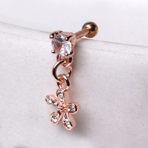 Rose Gold Plated Cartilage Earring with Flower Dangle is a stunning piece of jewelry that adds a touch of elegance to your ear accessories. This earring is designed specifically for cartilage and tragus piercings, making it a versatile addition to your collection. The beautiful flower dangle design not only enhances your style but also showcases your unique personality.
