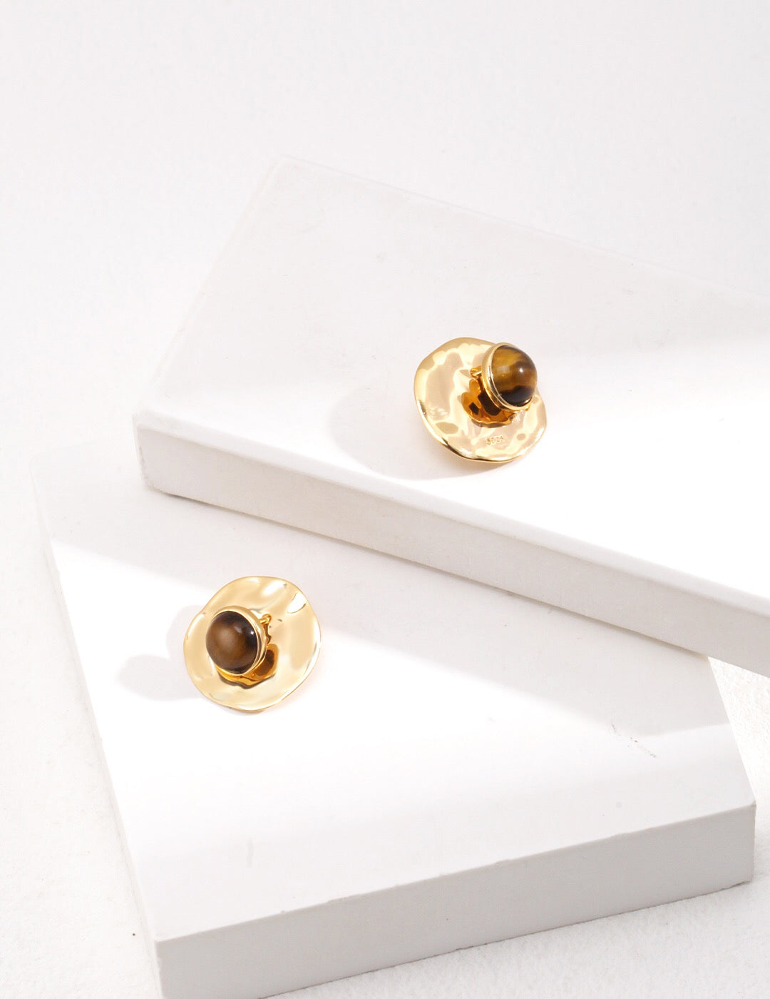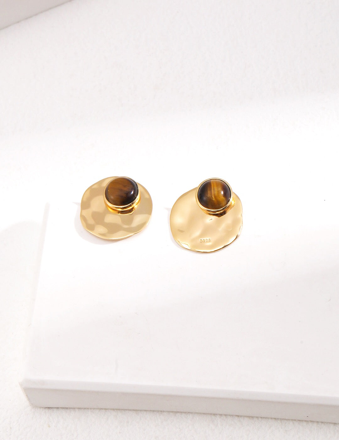 Introducing our exquisite Round Removable Tiger Eye Earrings, a stunning addition to any jewelry collection. These earrings are handcrafted with care, featuring genuine tiger eye stones set in gold vermeil, which is 18ct gold plated on sterling silver. The unique design and natural beauty of the tiger eye make these earrings a perfect accessory for both casual and formal occasions.