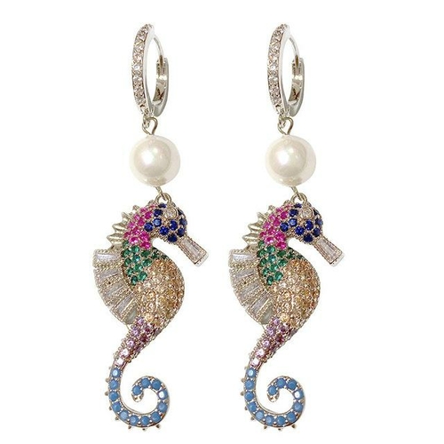 In summary, our Seahorse Earrings featuring cubic zirconia are a perfect blend of elegance, quality, and style. Whether you're treating yourself or gifting them to someone special, these earrings are sure to impress. Don't miss out on the chance to own this unique piece of jewelry that celebrates the beauty of the ocean and its enchanting creatures.