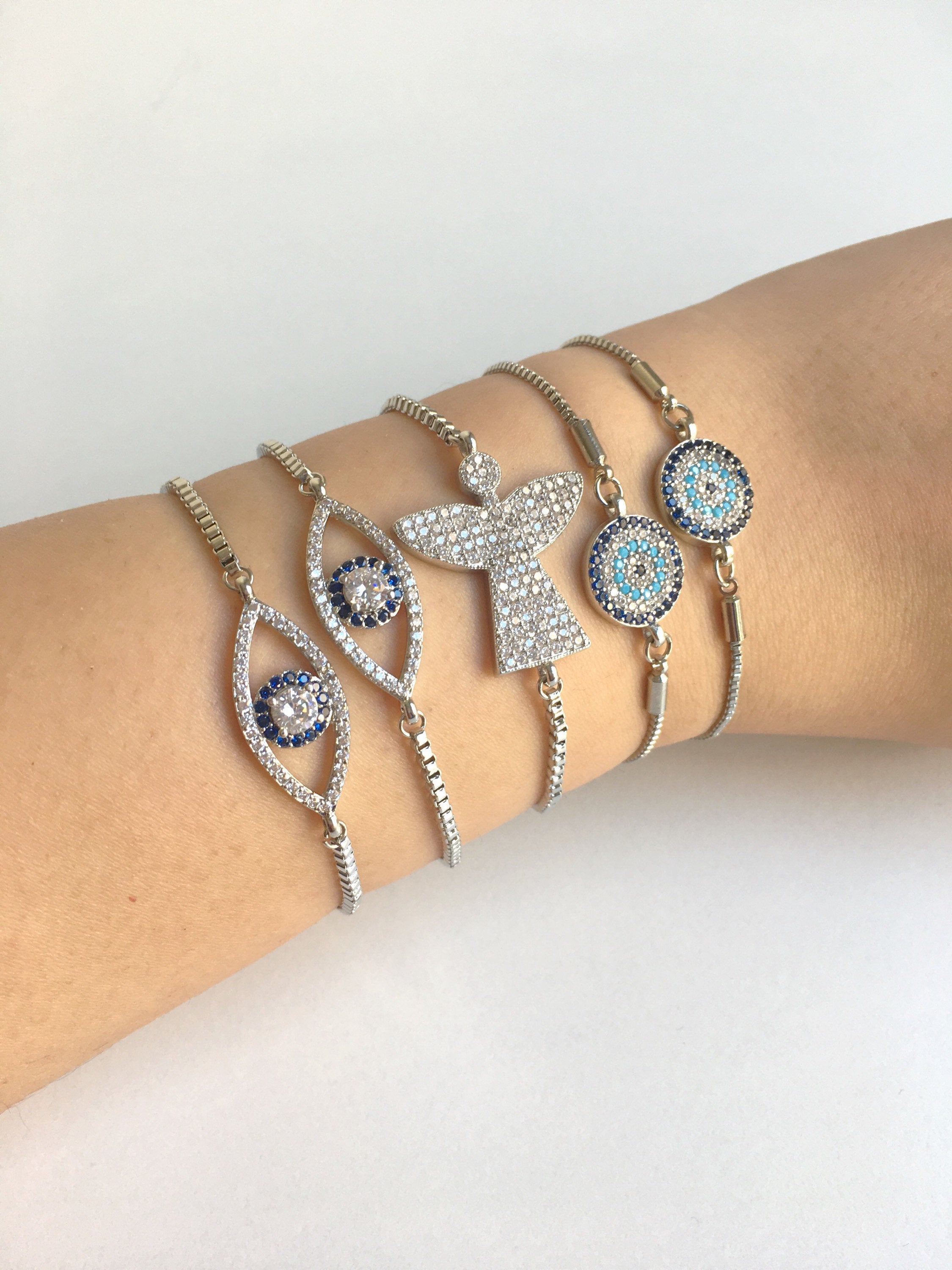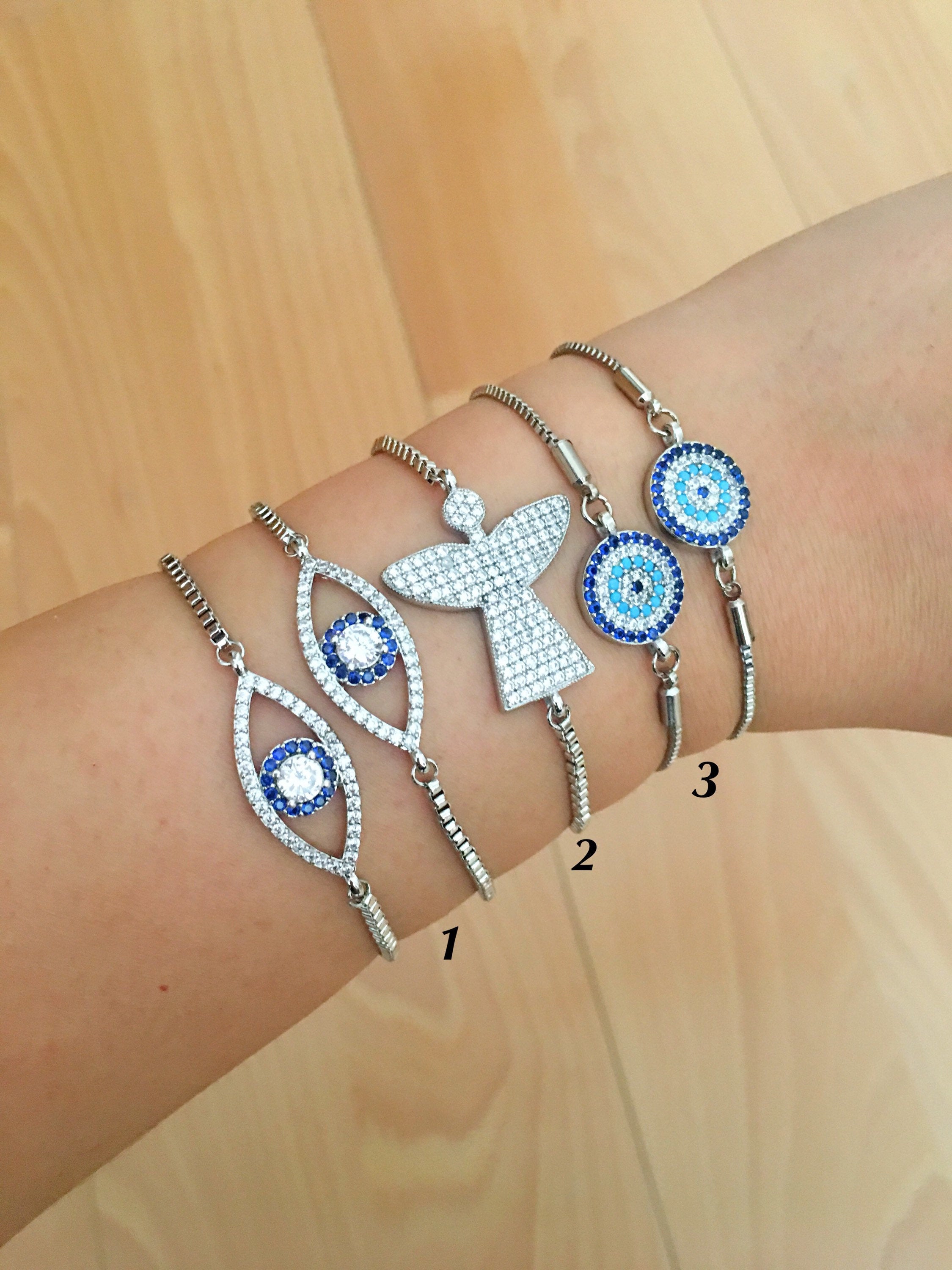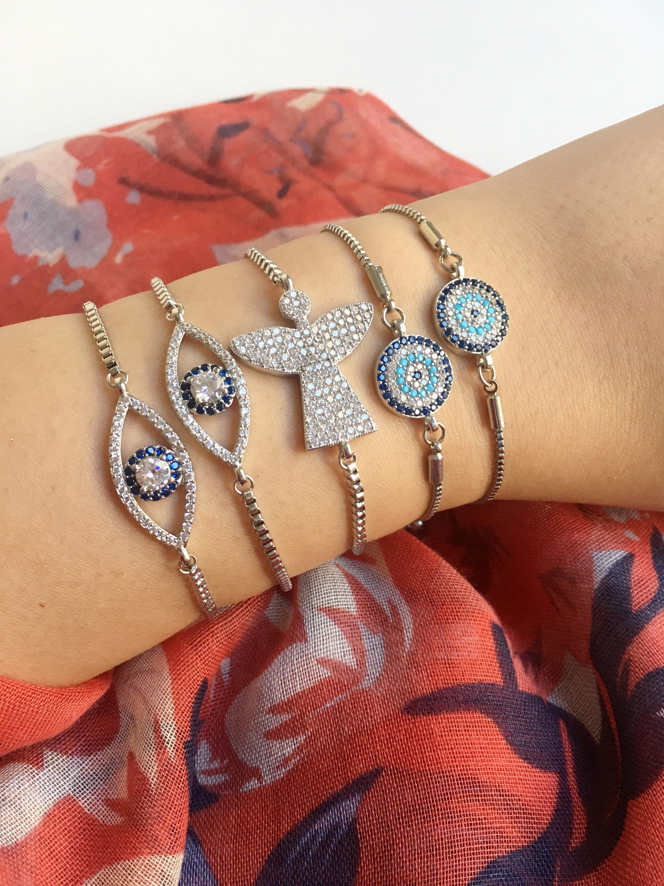 Our Silver Evil Eye Bracelet collection includes three distinct styles, each designed to cater to different tastes:
