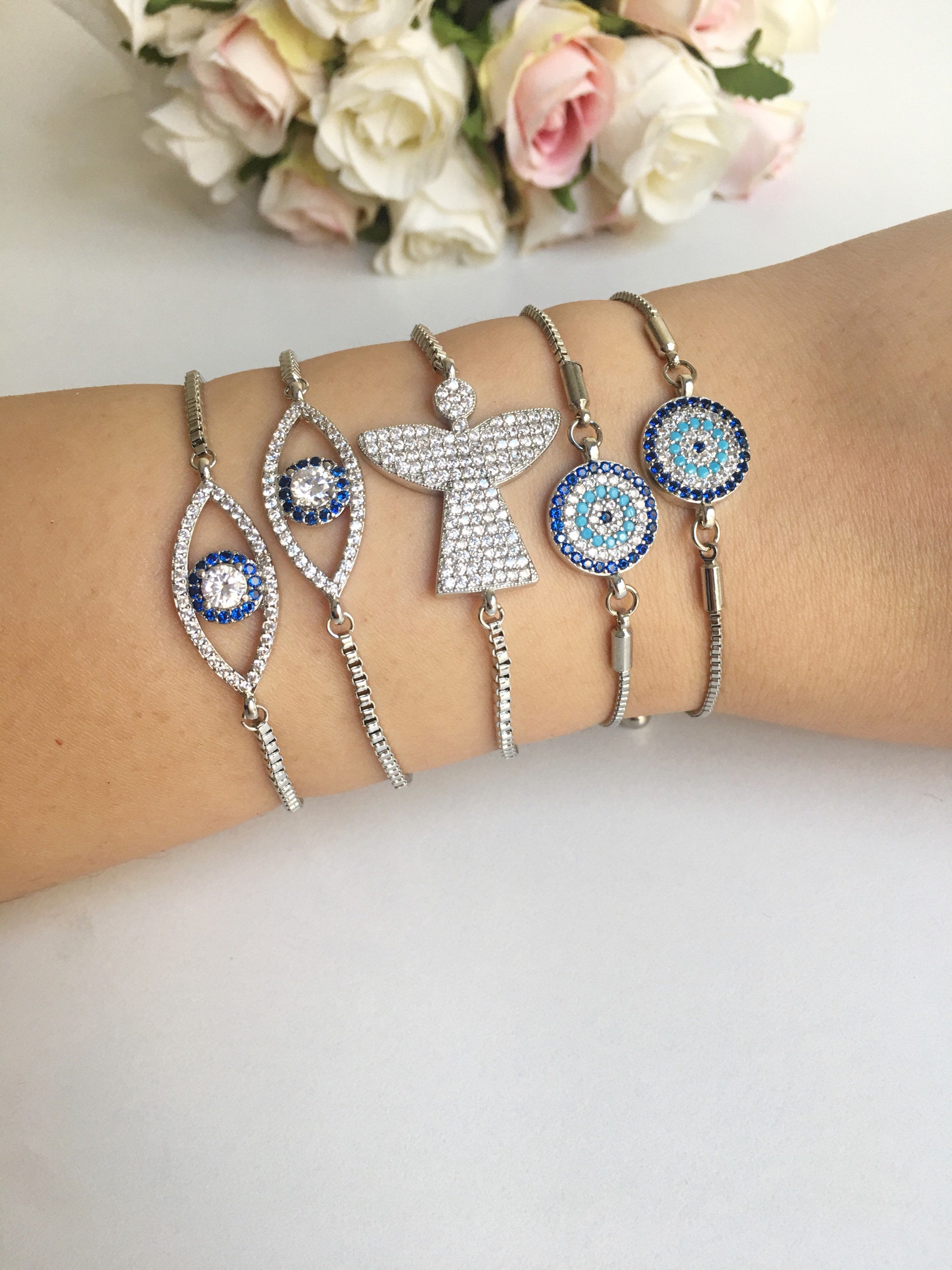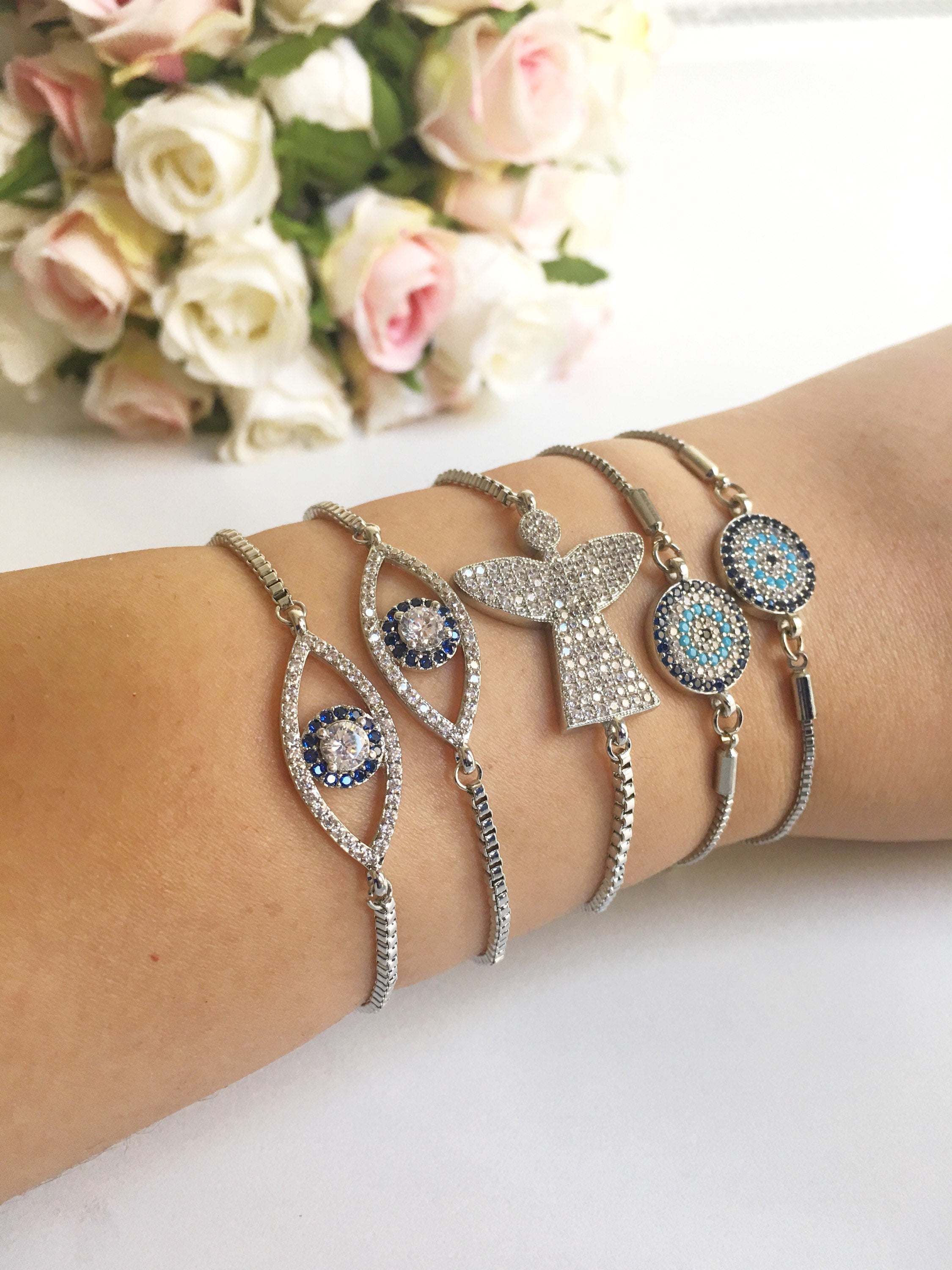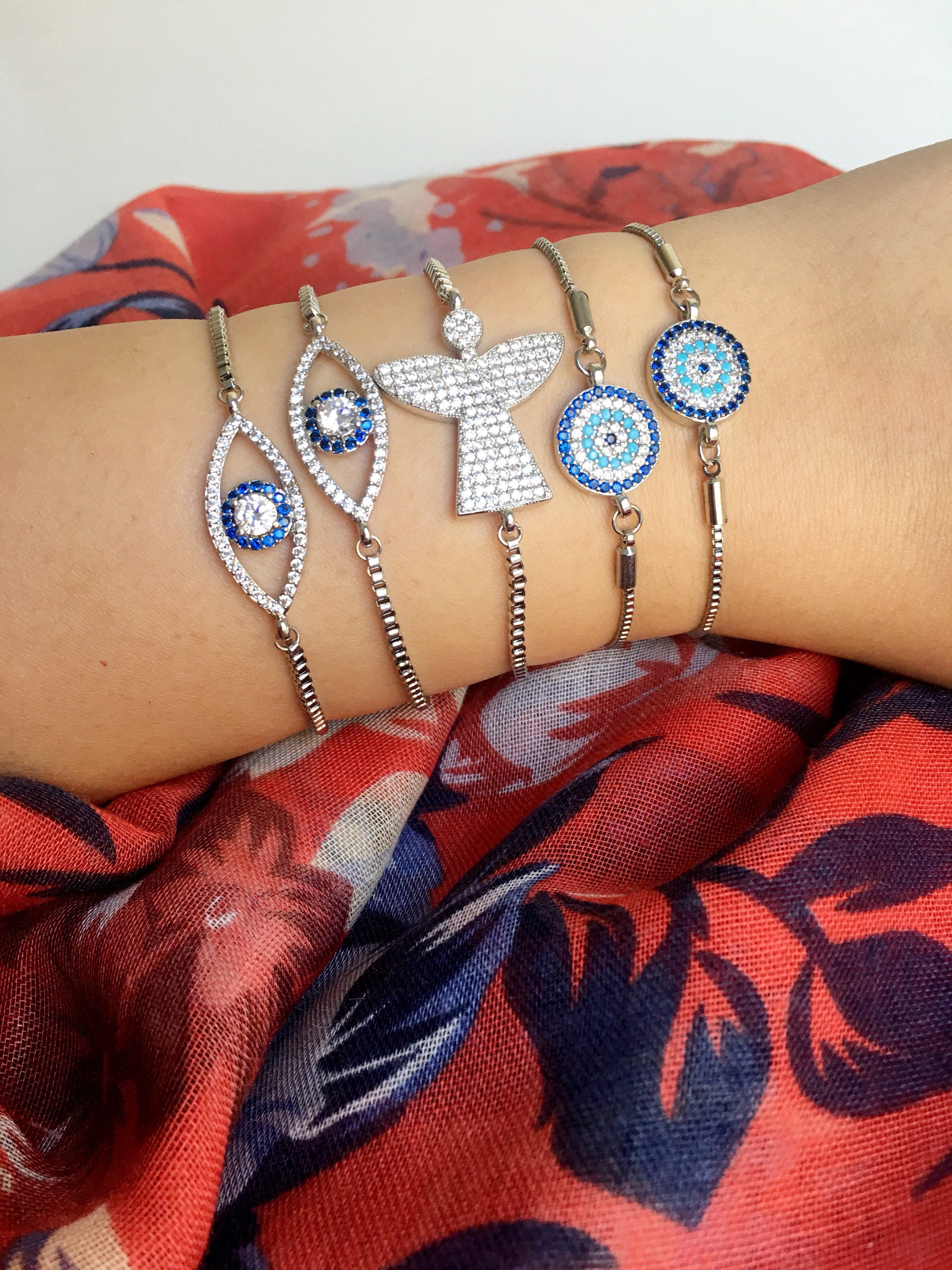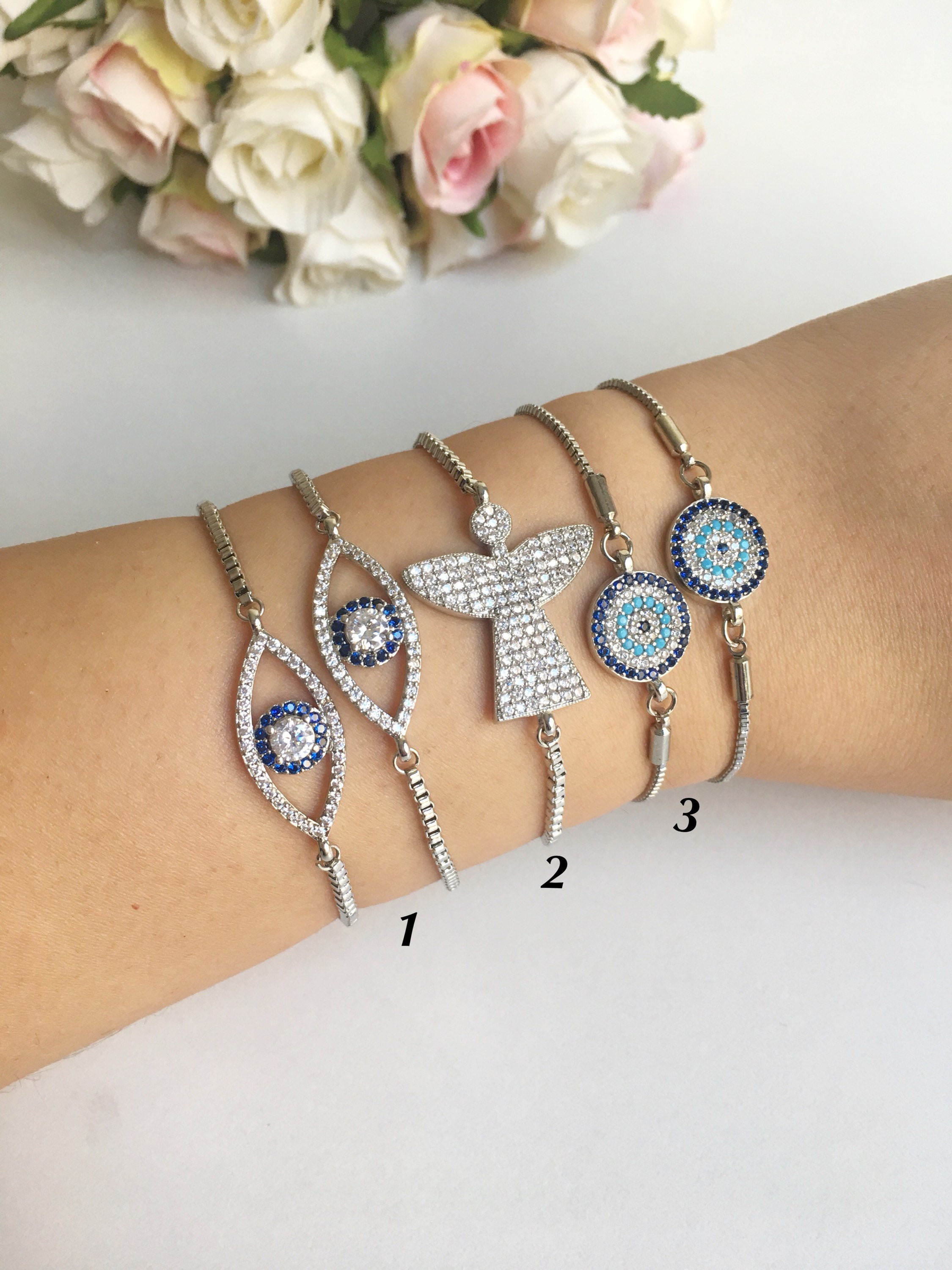 Our Silver Evil Eye Bracelet collection includes three distinct styles, each designed to cater to different tastes: