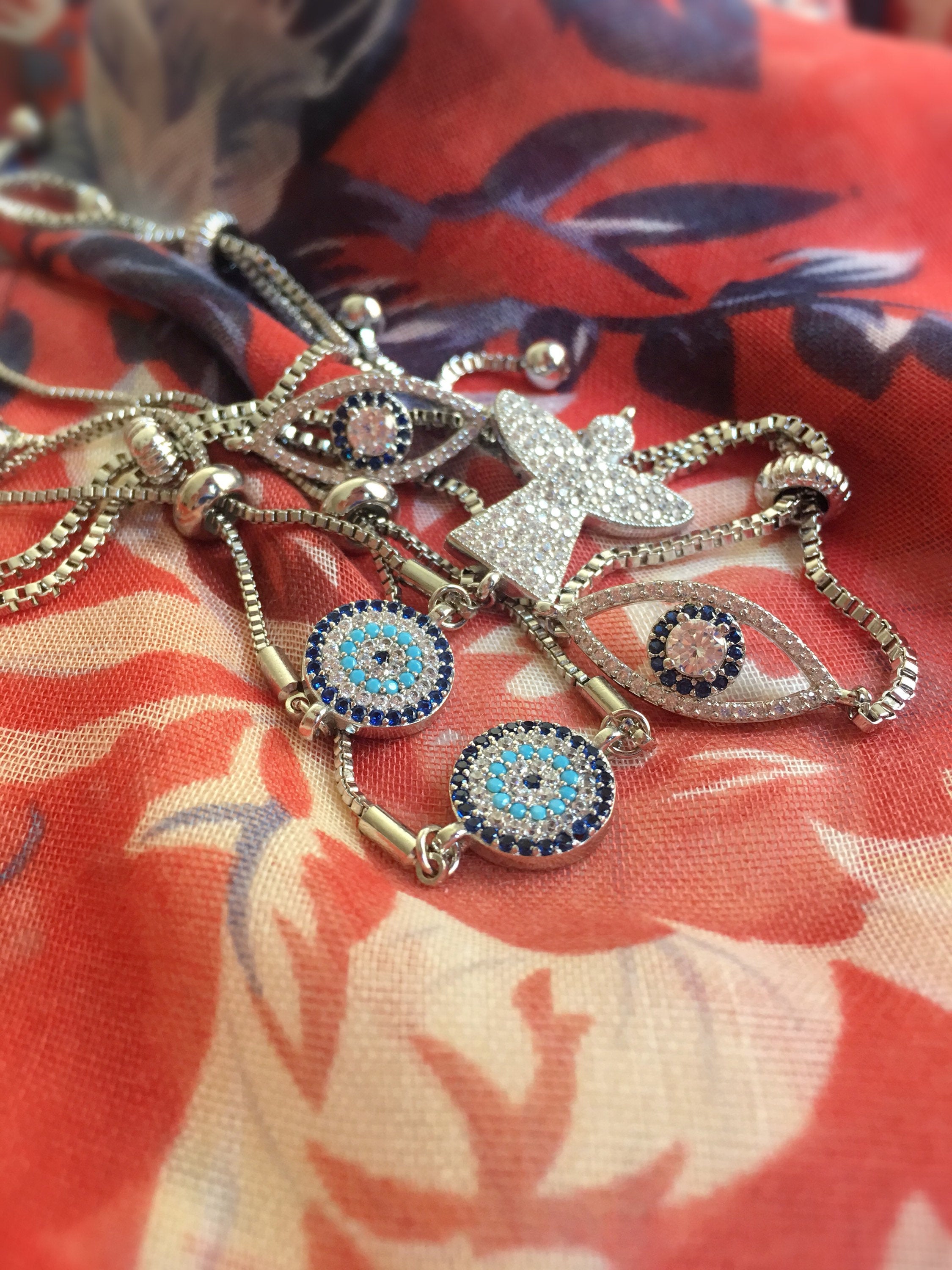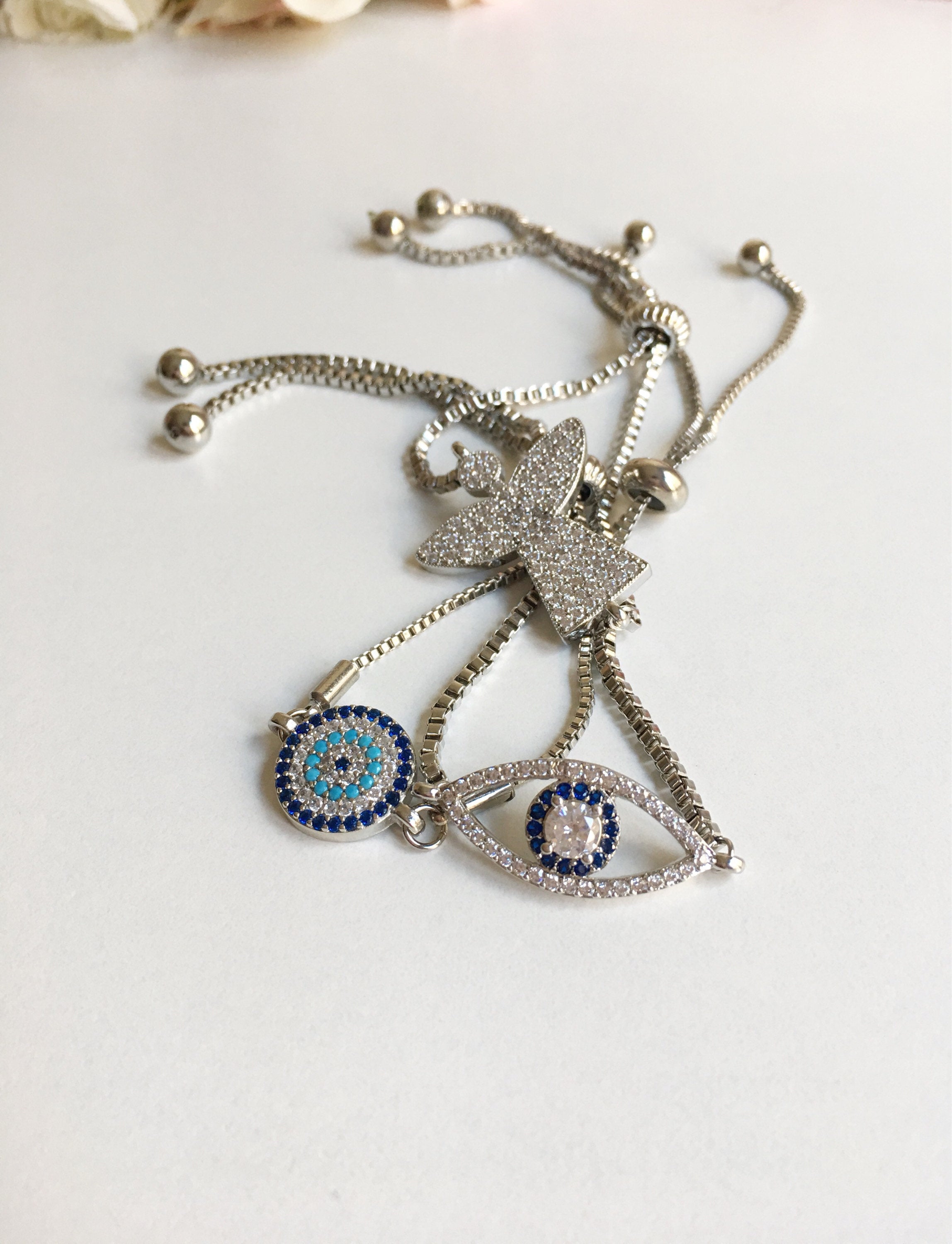 Handmade silver evil eye bracelet