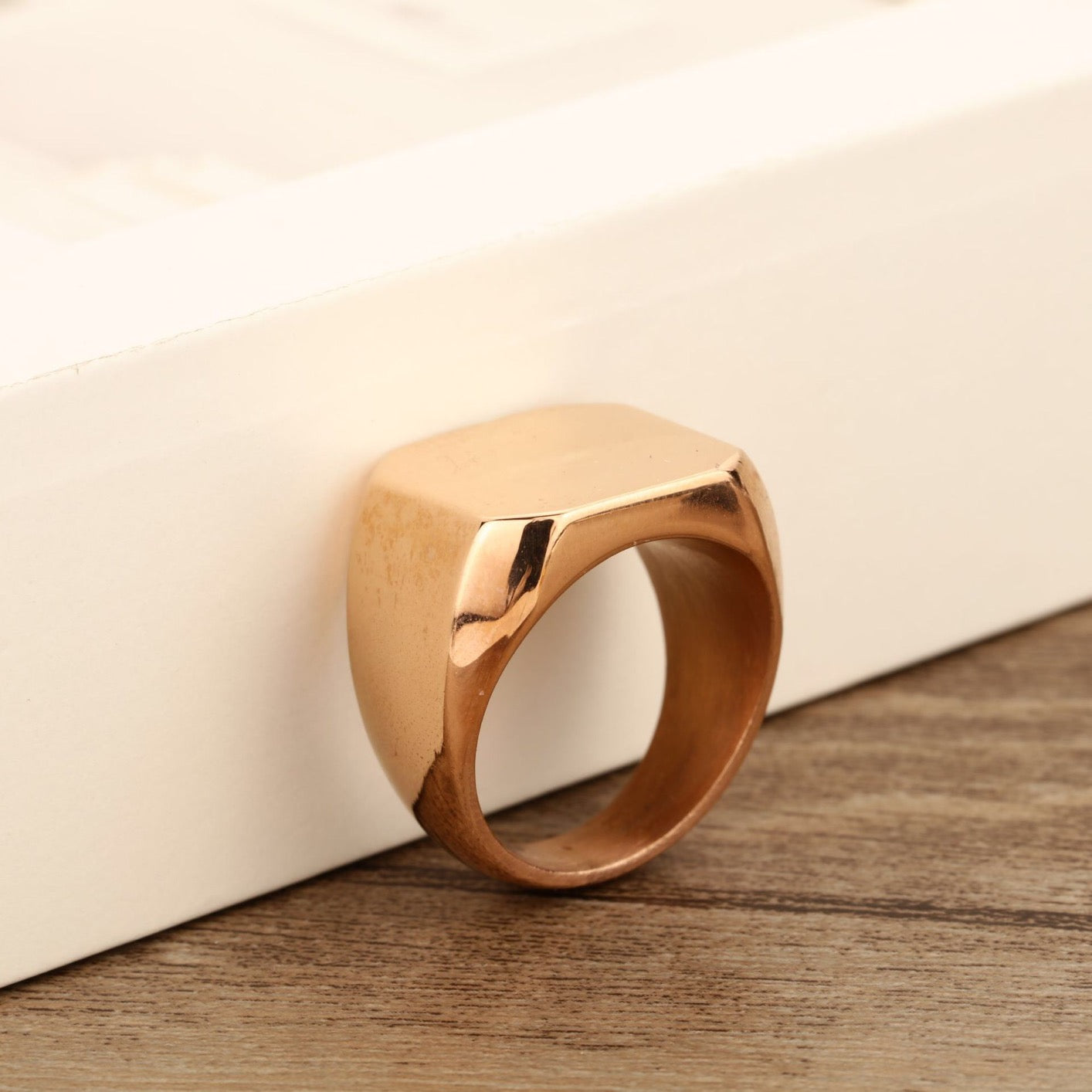 The Simple Square Ring features a unique square design that sets it apart from traditional round rings. Its minimalist aesthetic makes it a versatile addition to any jewelry collection. The clean lines and geometric shape create a modern look that can be paired with various outfits, from casual to formal. This ring is not just an accessory; it's a statement piece that reflects your personal style.