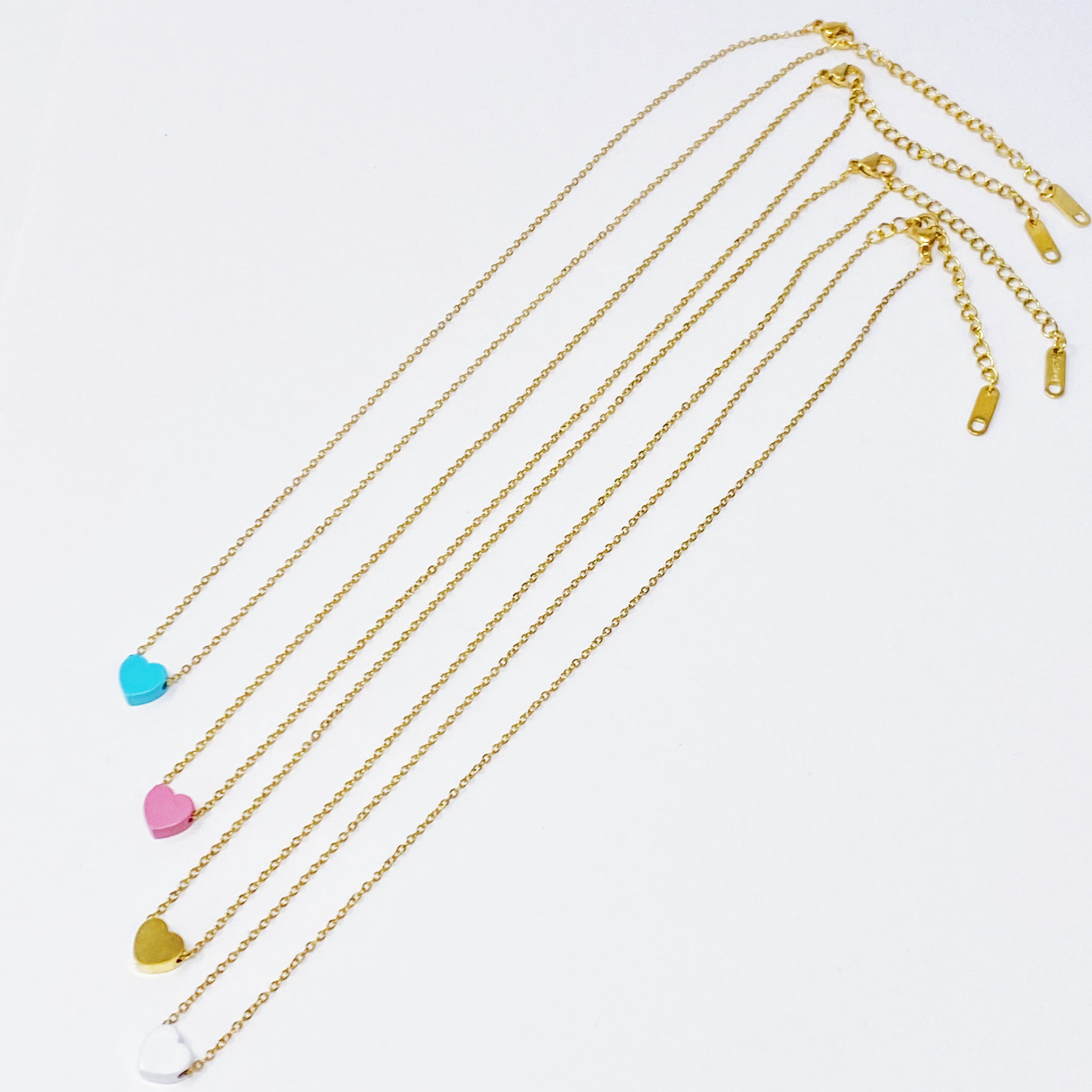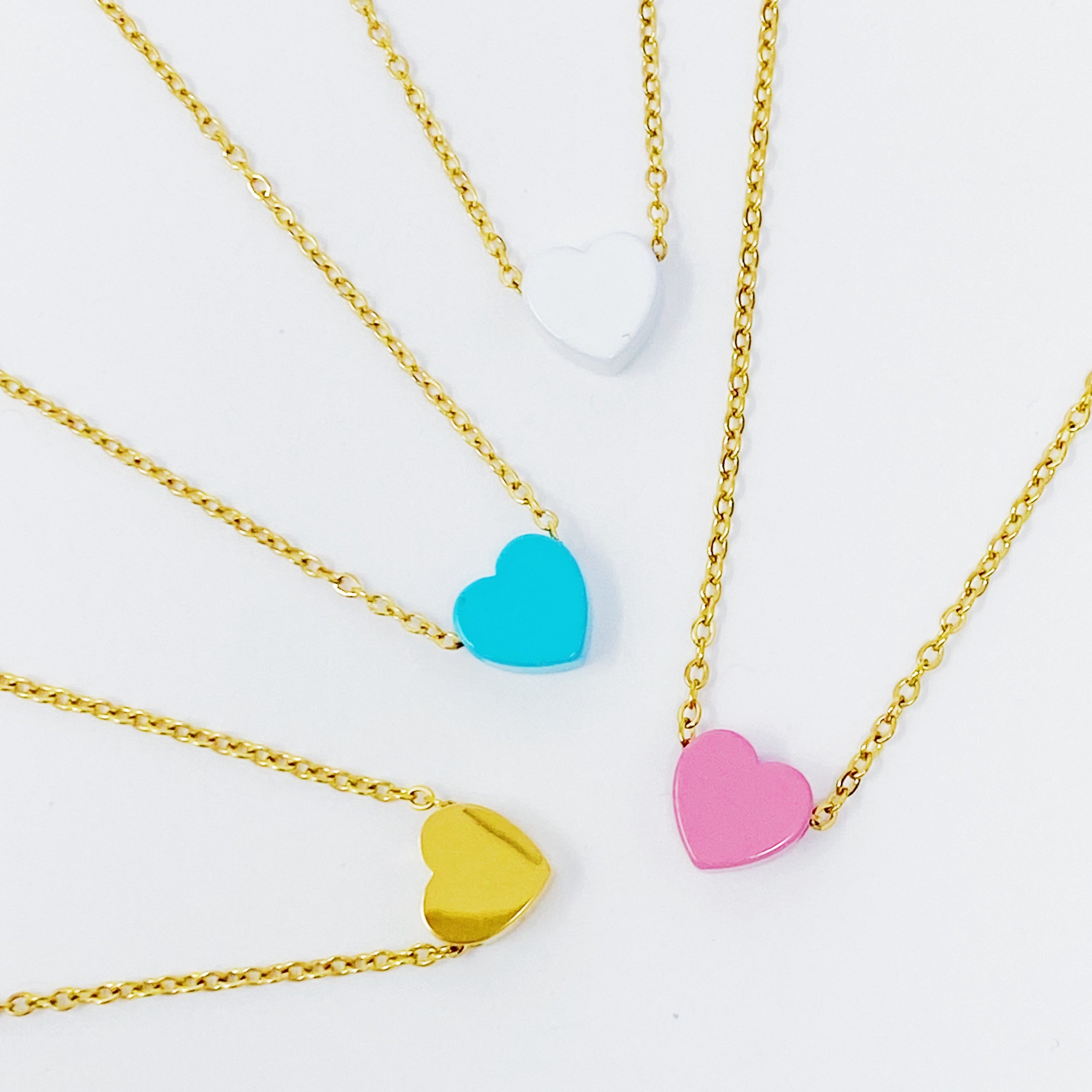 Crafted with care, the heart pendant is made from high-quality gold plated brass, ensuring durability and a stunning finish. Each heart is dipped in enamel, providing a vibrant and glossy appearance that catches the eye. The combination of gold plating and enamel not only enhances the aesthetic appeal but also ensures that the necklace remains a cherished piece in your jewelry collection for years to come.