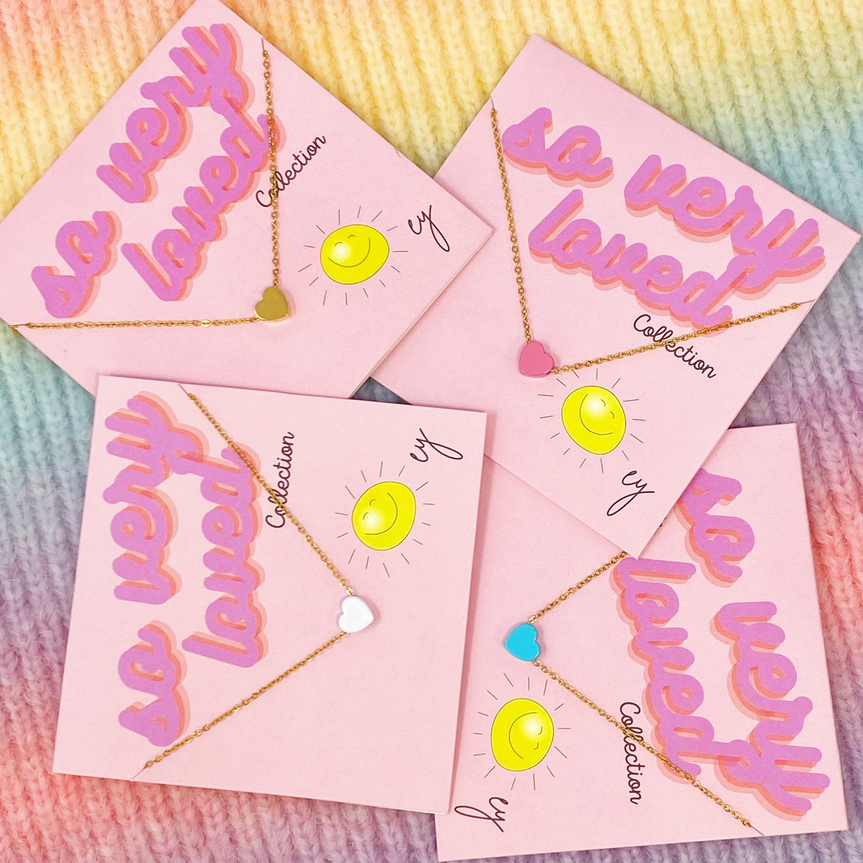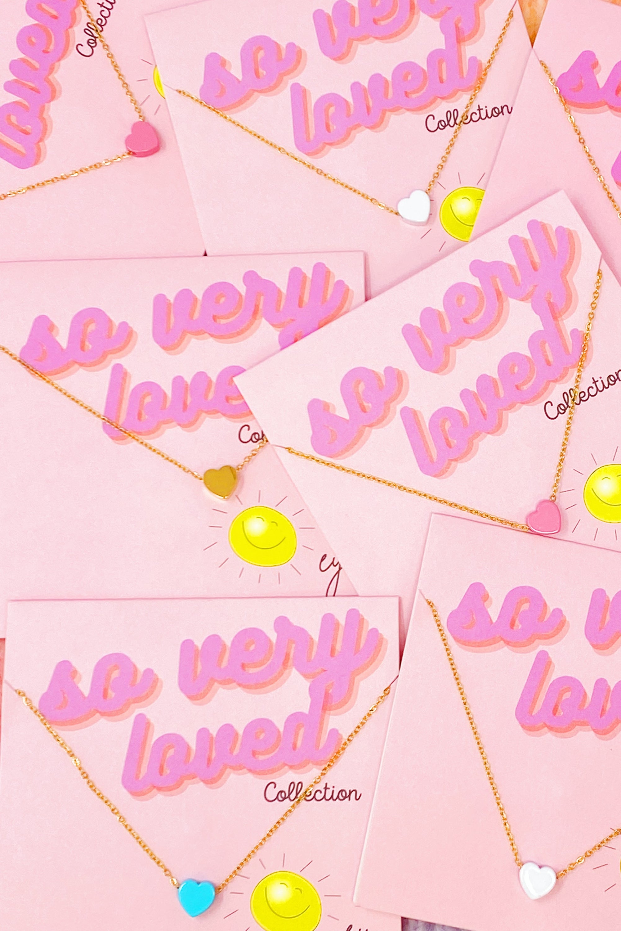 The So Very Loved Heart Necklace is a delightful piece from our exclusive collection, designed to bring joy and a touch of elegance to your everyday look. This charming necklace features a small heart pendant that comes in a variety of beautiful colors, making it a perfect accessory for any outfit. Whether you're dressing up for a special occasion or adding a pop of color to your casual wear, this necklace is sure to make you feel loved and cherished.