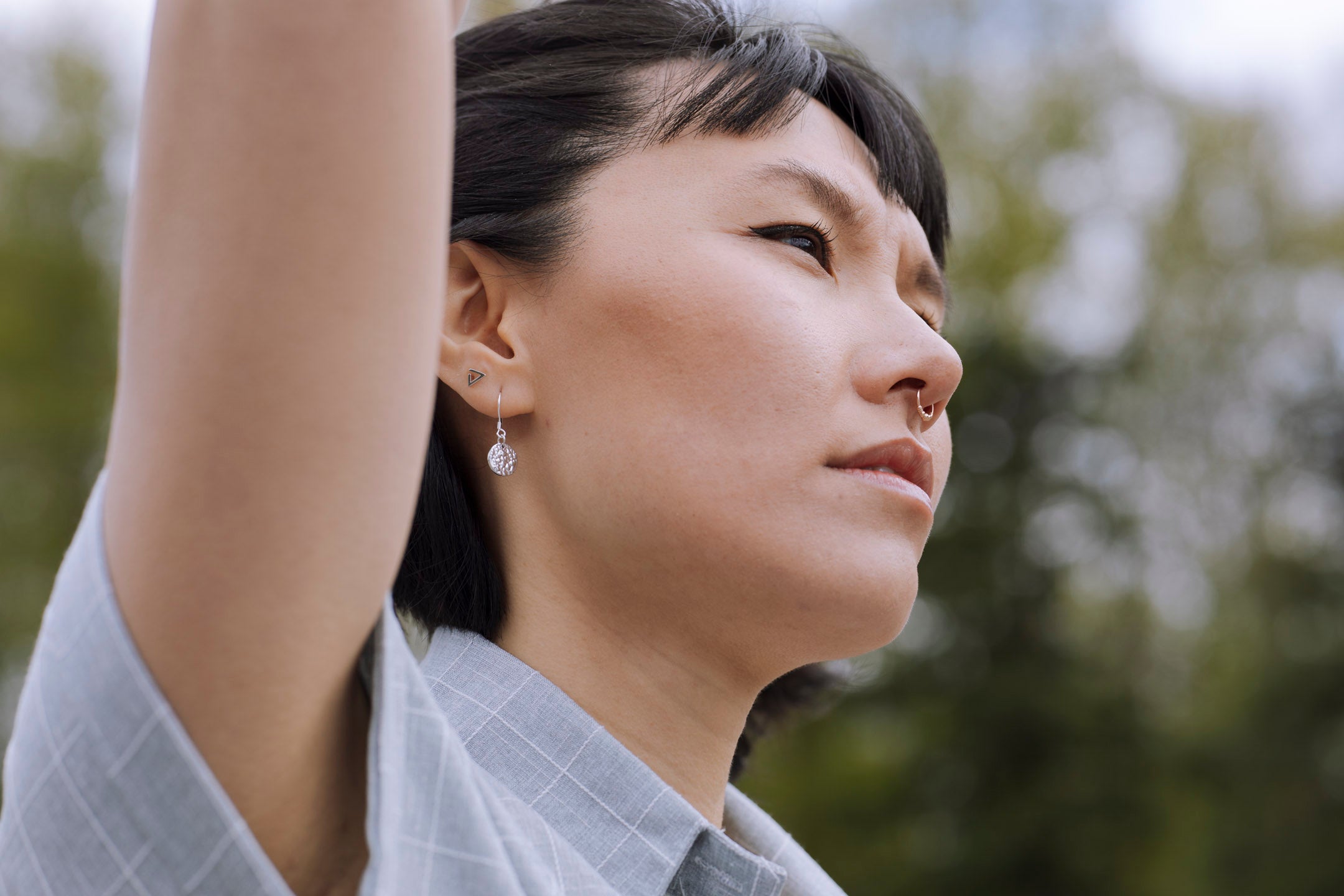 Crafted from high-quality sterling silver, the Sol Texture Circle Drop Earrings feature a unique textured design that adds depth and character. The small circle drop shape is both modern and timeless, ensuring that these earrings will remain a staple in your wardrobe for years to come. The texture not only enhances their visual appeal but also reflects light beautifully, creating a dazzling effect that will turn heads.