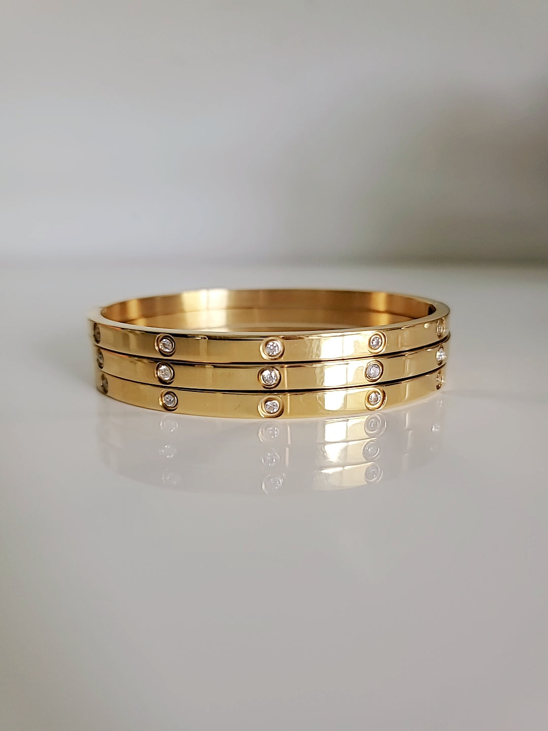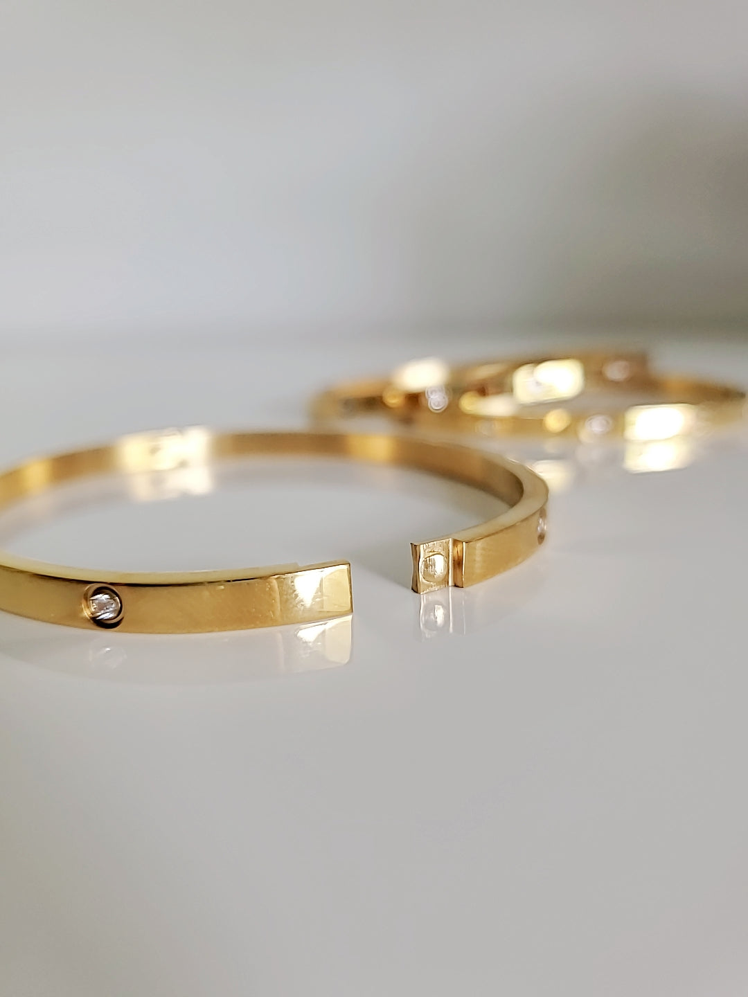 To keep your Solid Statement Bangle looking its best, it's important to follow some simple care instructions. Avoid exposing the bangle to harsh chemicals or abrasive materials, as these can damage the gold plating and simulated diamonds. When not in use, store it in a soft pouch or jewelry box to prevent scratches.