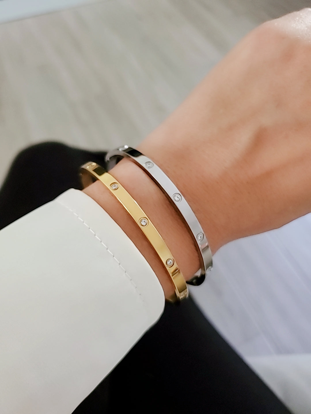 This bangle is perfect for any occasion, whether you're attending a wedding, going out for a dinner date, or simply want to elevate your everyday style. Its timeless design makes it a great addition to any jewelry collection, and it also makes for a thoughtful gift for loved ones.