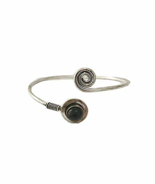 The Spiral Stone Bangle Bracelet embodies a boho and hippie style that is perfect for those who appreciate unique and artistic jewelry. Its spiral design adds a touch of whimsy, while the semi-precious stone provides a natural element that enhances its overall aesthetic. Available in both silver and gold colors, this bracelet can easily be paired with other jewelry or worn alone for a minimalist look.