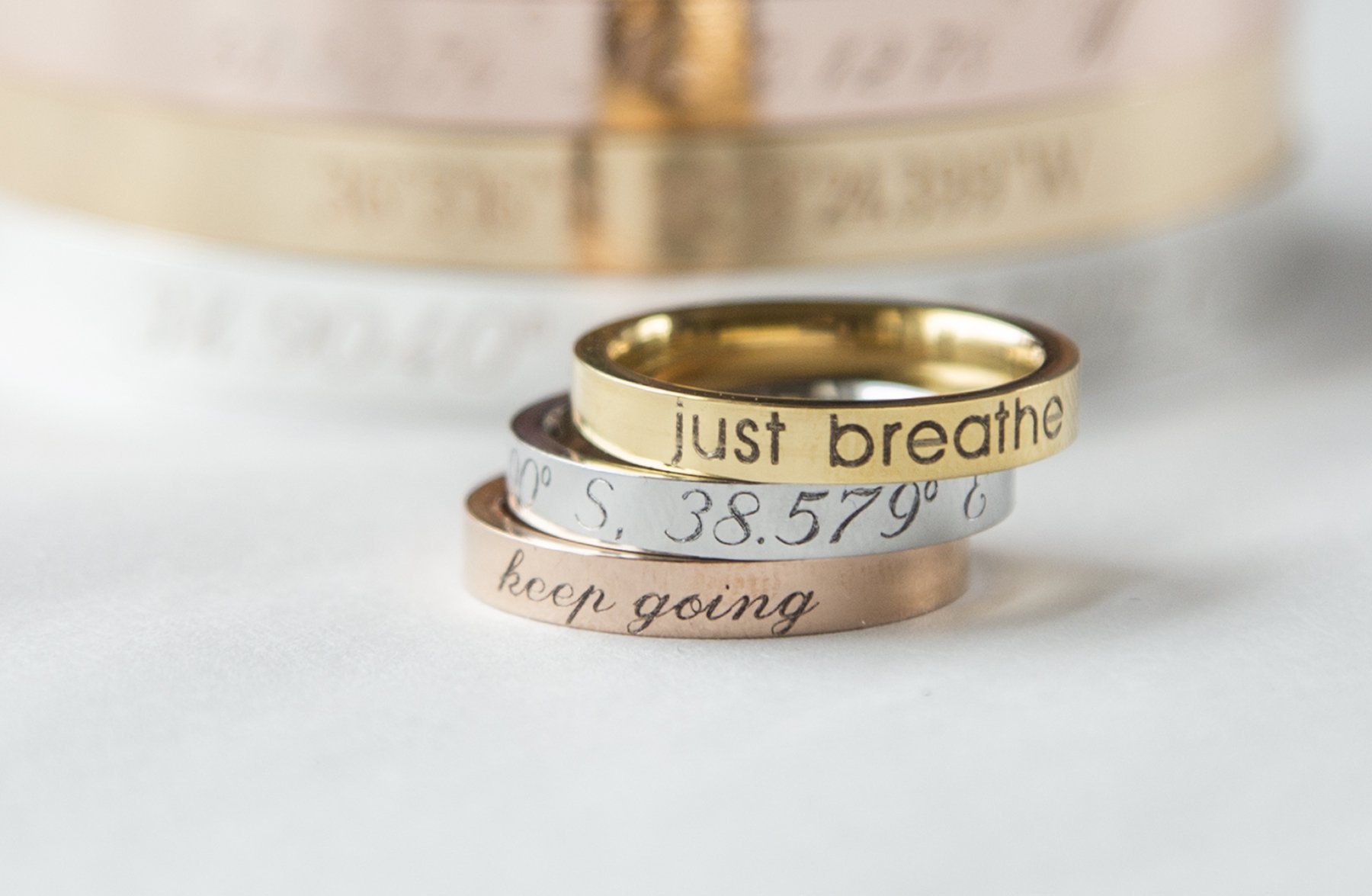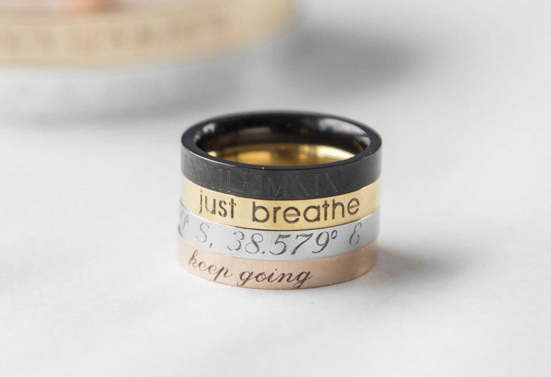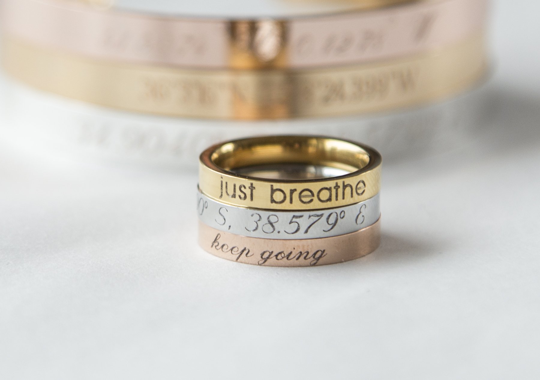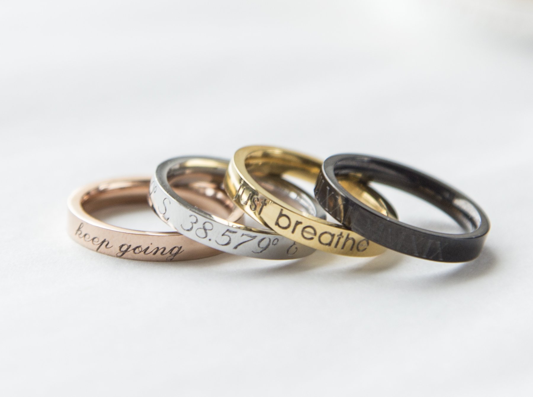 Whether you are treating yourself or surprising a loved one, this ring is sure to inspire and delight. Explore the beauty of personalized jewelry with our Stacking Ring Engraved Ring today!