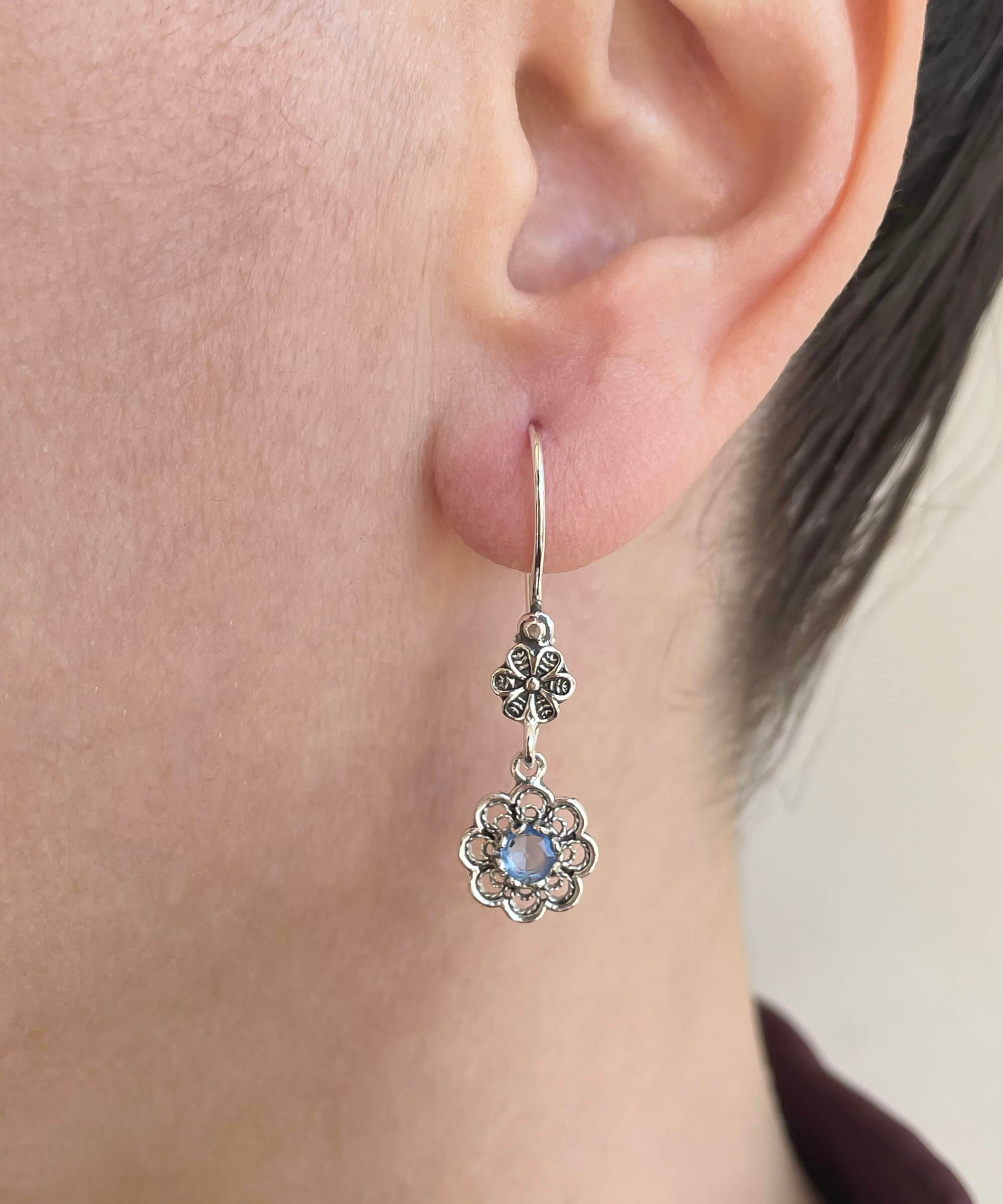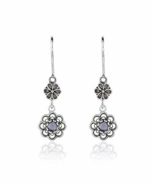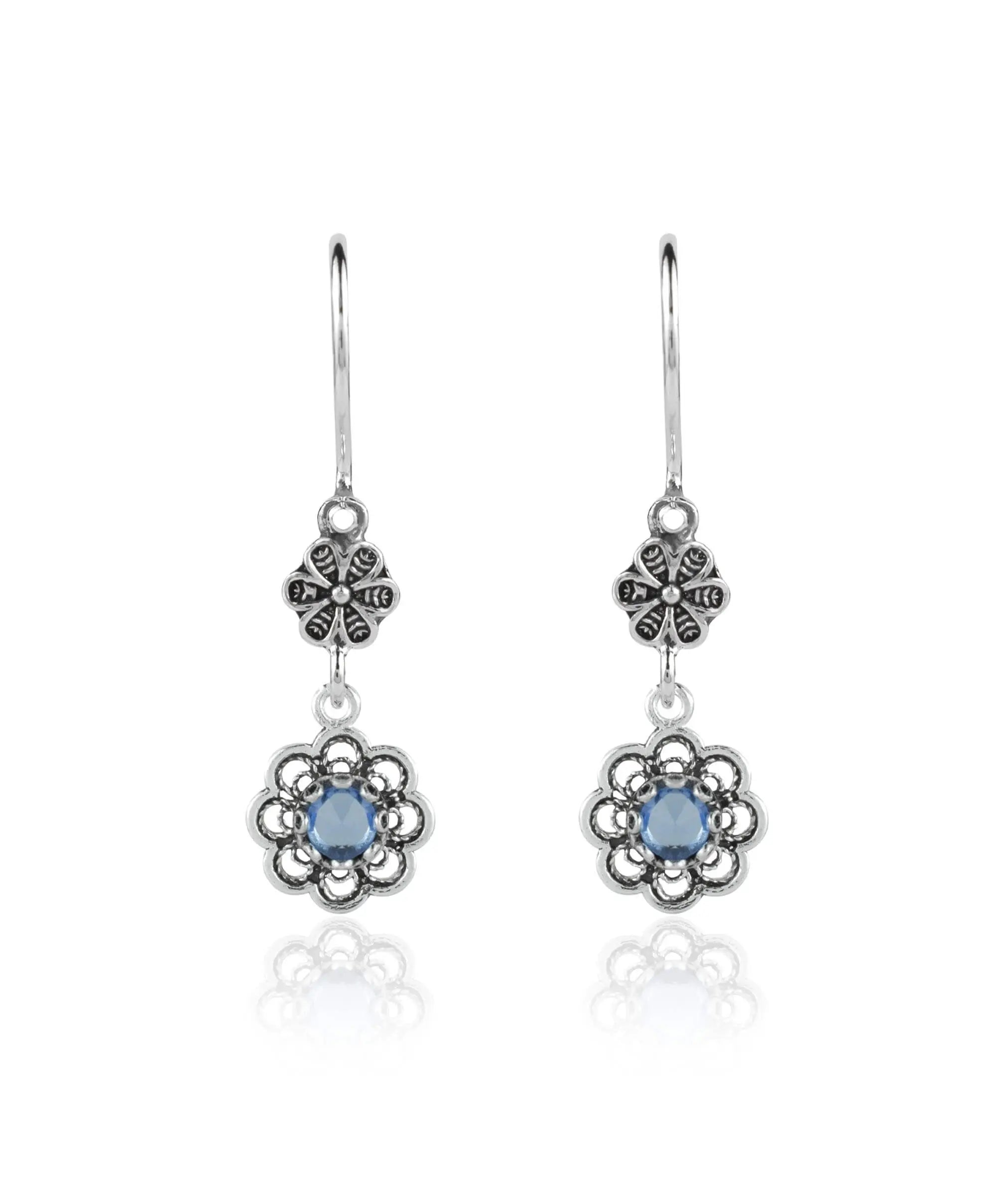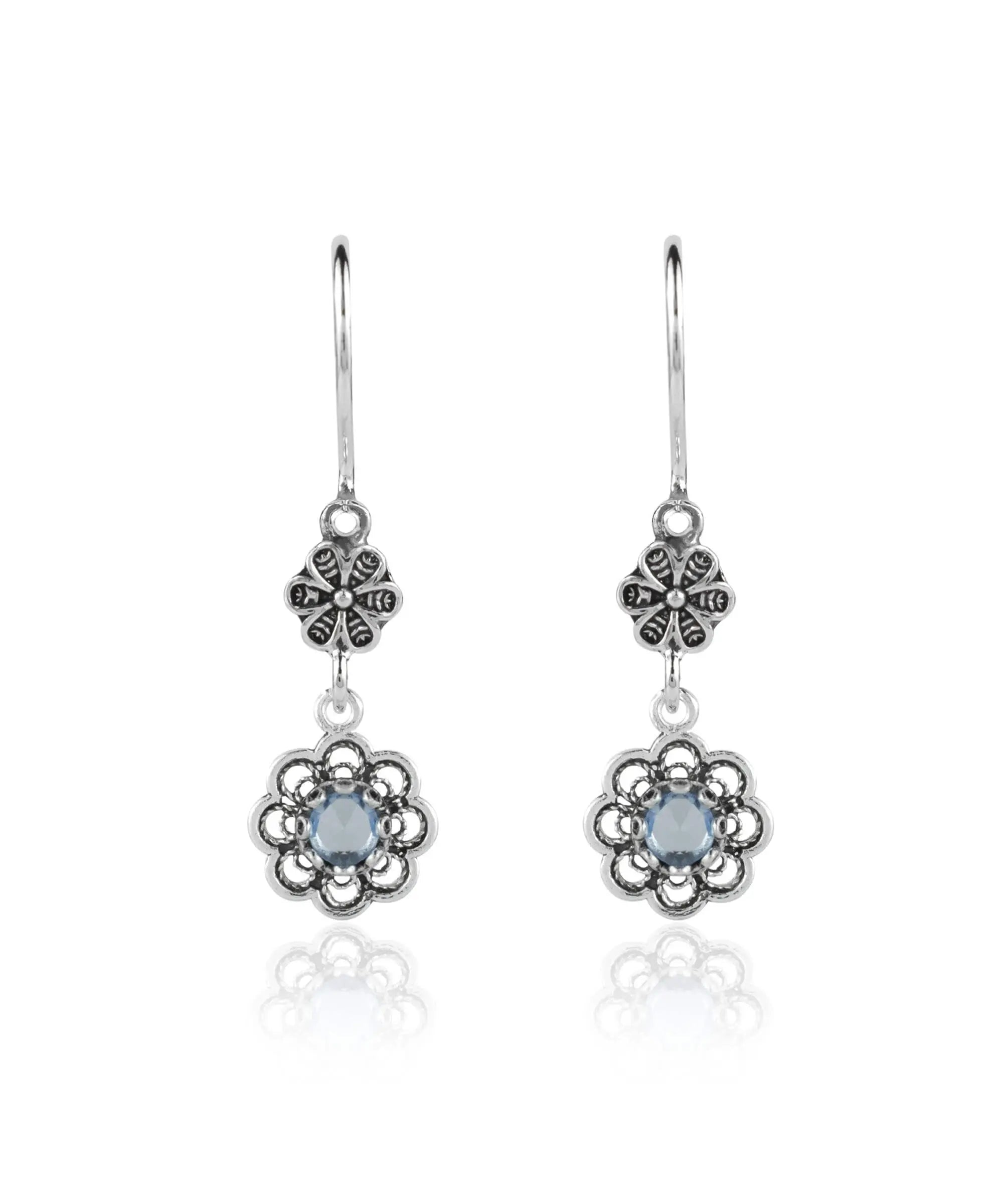 Introducing our exquisite Sterling Silver Filigree Art Floral Gemstone Women Dangle Earrings, a perfect blend of elegance and artistry. These earrings are meticulously handmade from high-quality 925 sterling silver, ensuring durability and a luxurious feel. The intricate floral design showcases double-sided faceted gemstones, available in a stunning array of colors including Amethyst, Blue Topaz, Blue Quartz, and Citrine. Each gemstone is carefully selected and cut to a 4.00 mm round shape, adding a touch of brilliance to the overall design.