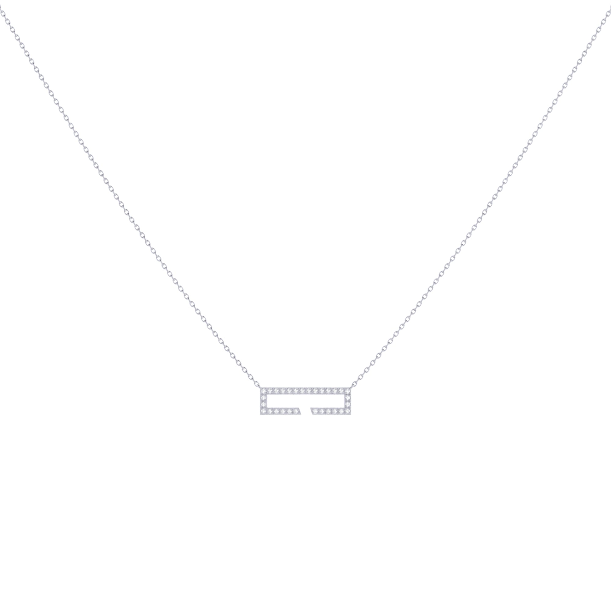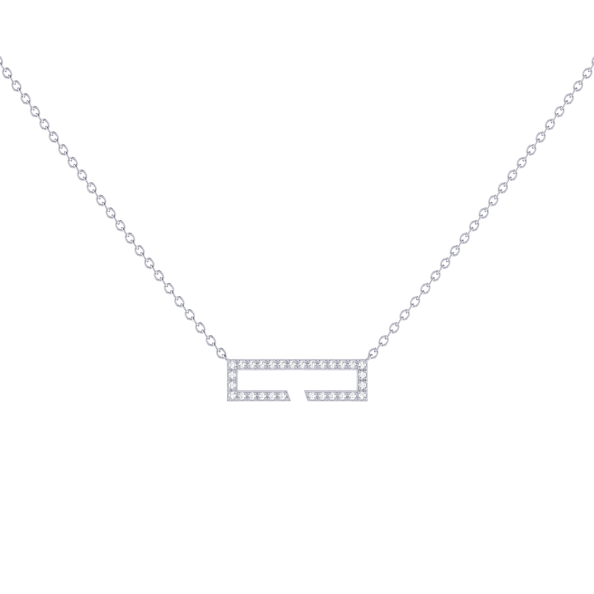 Swing Rectangle Diamond Necklace in Sterling Silver featuring genuine diamonds in a micro pave setting, displayed elegantly on a soft background.