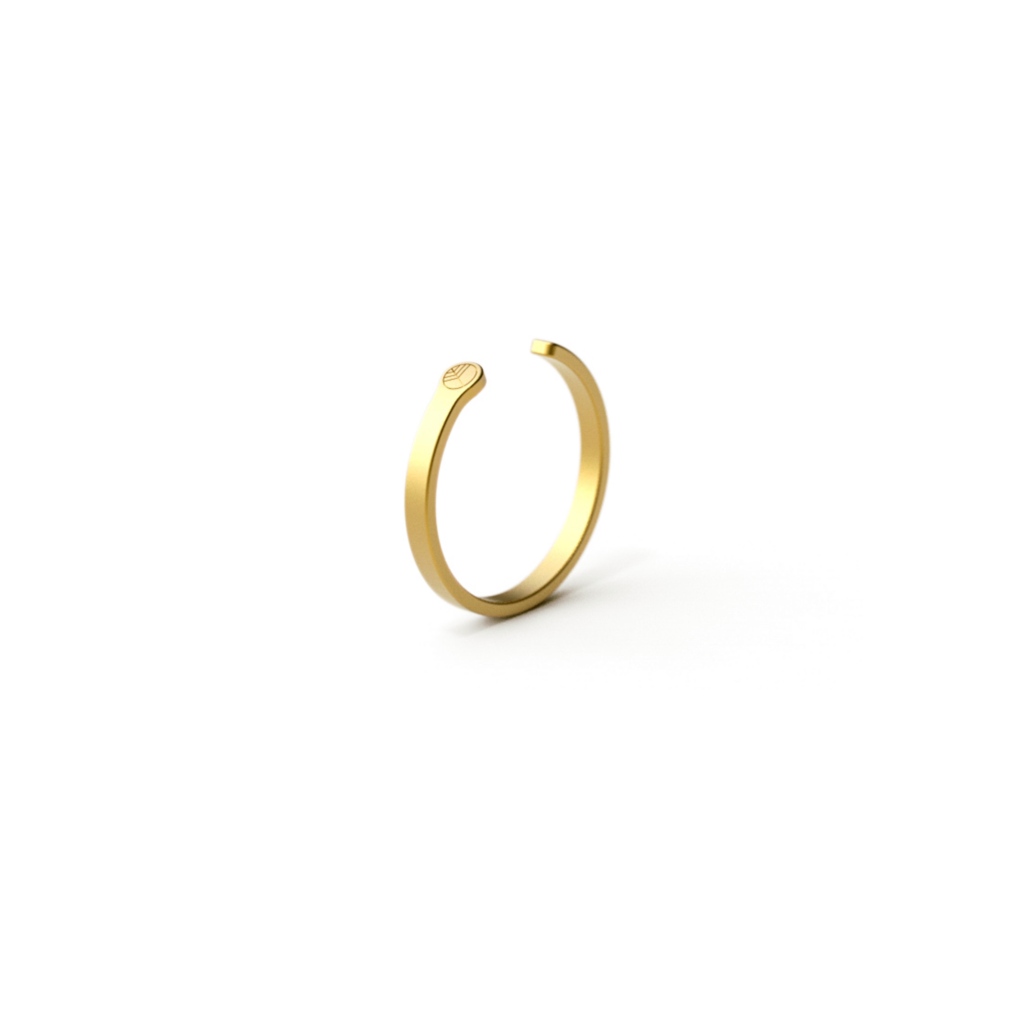 Elegant Tear-Drop Ring made of hypoallergenic stainless steel with a 24k gold coating, showcasing its unique design and luxurious finish.