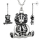 The Teddy Bear Sitting Pretty necklace & earrings are the perfect accessories for an adorable person with a dark sense of humor. Made of stainless steel, each Teddy Bear Sitting Pretty earring is adorned with black epoxy and two pieces of white Swarovski crystal. Necklace features a cute teddy bear pendant created for that special loved one who is fond of both the adorable and cuddly as well as the spooky and macabre. 316L Stainless Steel with black epoxy and two white Swarovski Pouch included Pendant Size: W: 1.26" H: 1.18" Chain Length: 28" Earring Size: W:0.64" H: 0.69" Approximate drop: 1.38 inches
