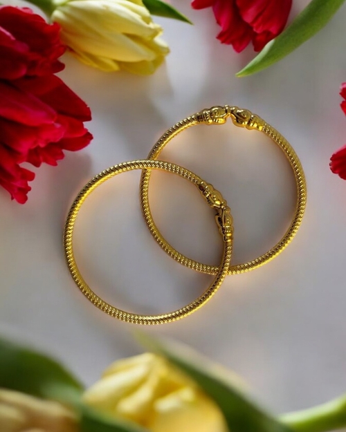 Gold-plated bangles are often adorned with intricate designs, including traditional motifs such as paisleys, flowers, and geometric patterns. They are frequently embellished with gemstones, enamel work, or delicate filigree, making them versatile for both daily wear and special occasions. Their lightweight nature and affordable price make them popular among a broad range of people, from those seeking elegant accessories for everyday wear to those looking to complement their festive attire.