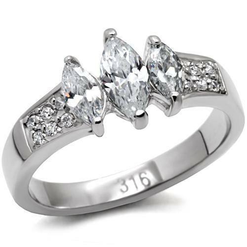 At the heart of this exquisite ring is an AAA Grade cubic zirconia (CZ) center stone. Known for its clarity and brilliance, the AAA Grade CZ mimics the appearance of a diamond, making it an ideal choice for those who appreciate the look of fine jewelry without the hefty price tag. The clear color of the stone enhances its sparkle, making it a captivating focal point of the ring.