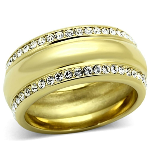 In summary, the TK1096 IP Gold Stainless Steel Ring with Top Grade Crystal is a perfect blend of style, durability, and elegance. Its high-quality materials, stunning design, and quick shipping make it a must-have for anyone looking to enhance their jewelry collection.