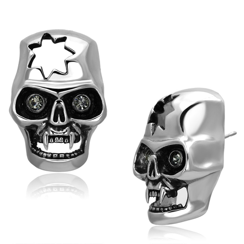 TK1130 High Polished Stainless Steel Earrings featuring a black diamond crystal centerpiece, showcasing a modern and elegant design.