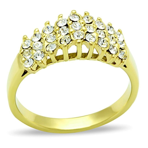 The TK1384 IP Gold Stainless Steel Ring is a stunning piece of jewelry that combines elegance and durability. Crafted from high-quality stainless steel, this ring features a luxurious IP gold ion plating that gives it a radiant shine. The centerpiece of this exquisite ring is a top-grade clear crystal, which adds a touch of sophistication and glamour to any outfit. Whether you're dressing up for a special occasion or looking for a stylish accessory for everyday wear, this ring is the perfect choice.