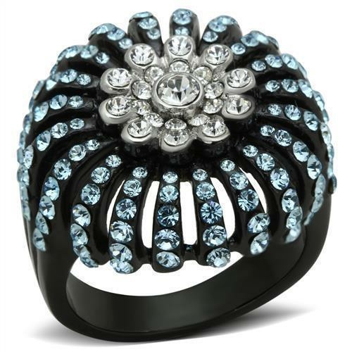 In summary, the TK1442 Two-Tone IP Black Stainless Steel Ring with Top Grade Sea Blue Crystal is a stunning addition to any jewelry collection. Its elegant design, high-quality materials, and comfortable fit make it a must-have accessory for anyone who loves to express their style through unique and beautiful jewelry pieces.