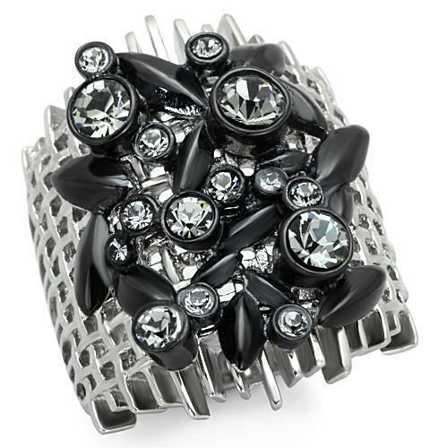 At the heart of the TK1687 ring is a breathtaking top grade crystal, which is carefully selected for its clarity and brilliance. The center stone is designed to resemble a black diamond, adding a touch of sophistication and luxury to the piece. The striking contrast between the black crystal and the stainless steel creates a captivating visual effect that is sure to turn heads.