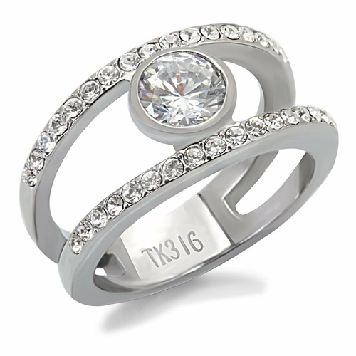The centerpiece of the TK171 ring is a AAA Grade clear cubic zirconia stone. CZ is a popular alternative to diamonds, offering a similar brilliance and clarity at a fraction of the cost. The clear color of the stone complements the shiny stainless steel, making it a versatile accessory that can be worn for both casual and formal occasions.