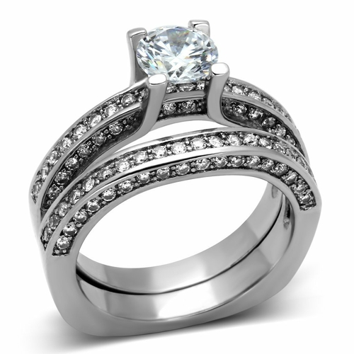 TK1175 High Polished Stainless Steel Ring featuring a clear AAA Grade CZ stone, showcasing its elegant design and shiny finish.