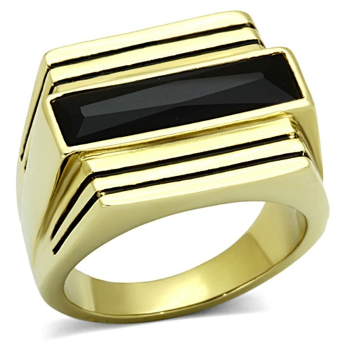 The center stone of the TK1188 ring is crafted from synthetic glass, which is designed to mimic the appearance of natural gemstones while offering a more affordable option. The jet color of the stone adds a bold contrast against the gold finish, making it a standout piece. Whether you're dressing up for a special event or adding flair to your everyday look, this ring is sure to draw attention.