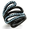 TK1835 IP Black Stainless Steel Ring featuring a sea blue top grade crystal, showcasing its elegant design and durable finish.
