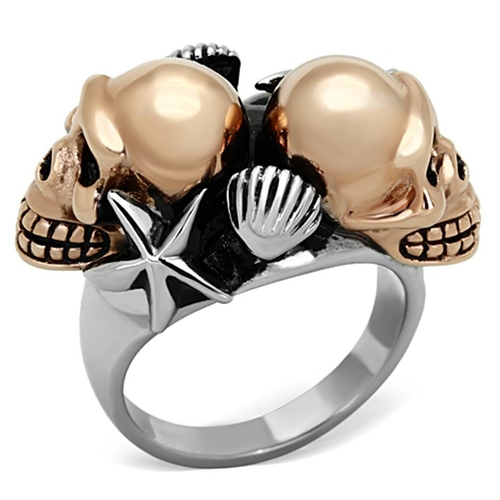 The primary material of this ring is stainless steel, known for its strength and resistance to tarnishing. The two-tone IP rose gold finish not only enhances its aesthetic appeal but also ensures longevity, making it a perfect choice for daily wear. The unique combination of colors allows this ring to complement a variety of styles, from casual to formal.