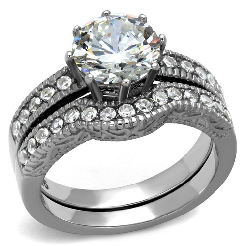 The TK1W007 High Polished Stainless Steel Ring is a stunning piece of jewelry that combines elegance and durability. Crafted from high-quality stainless steel, this ring features a high polished finish that gives it a brilliant shine without any plating. The centerpiece of this exquisite ring is an AAA grade cubic zirconia (CZ) stone, known for its clarity and brilliance, making it an ideal choice for those who appreciate fine jewelry.