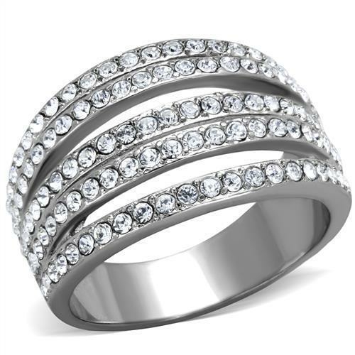 TK2029 High Polished Stainless Steel Ring featuring a clear top-grade crystal, showcasing its elegant design and shiny finish.