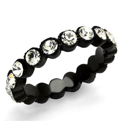 At the heart of the TK2207 ring is a stunning clear top grade crystal. This high-quality stone is known for its brilliance and clarity, making it a captivating focal point of the ring. The clear crystal complements the black finish beautifully, creating a striking contrast that is sure to catch the eye.