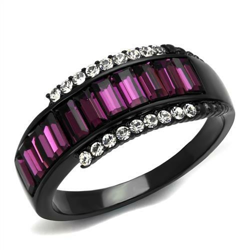 At the heart of the TK2191 ring lies a top-grade amethyst crystal, known for its rich purple hue and captivating sparkle. Amethyst is not only beautiful but is also believed to possess healing properties, making this ring a meaningful addition to your jewelry collection. The vibrant color of the amethyst contrasts beautifully with the black ion plating, creating a stunning visual effect that is sure to turn heads.