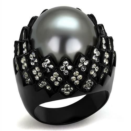 The centerpiece of this exquisite ring is a synthetic gray pearl, which adds a unique and sophisticated flair. Unlike natural pearls, synthetic pearls are created in a controlled environment, allowing for consistent quality and color. The gray hue of the pearl complements the black finish of the ring beautifully, making it a versatile accessory that can be paired with various outfits.