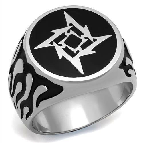 The centerpiece of this exquisite ring is a jet epoxy stone, which adds a unique touch to its overall design. The deep black color of the jet epoxy contrasts beautifully with the polished stainless steel, creating a striking visual effect. This combination not only enhances the ring's aesthetic appeal but also makes it a perfect gift for loved ones or a special treat for yourself.