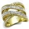 The ring is crafted from premium stainless steel, known for its strength and resistance to tarnishing. The two-tone IP gold ion plating gives the ring a luxurious appearance while ensuring that it maintains its shine over time. This finish is not only visually appealing but also adds an extra layer of protection against scratches and wear.