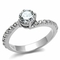 TK3094 High Polished Stainless Steel Ring featuring a clear AAA Grade CZ stone, showcasing its elegant design and shiny finish.