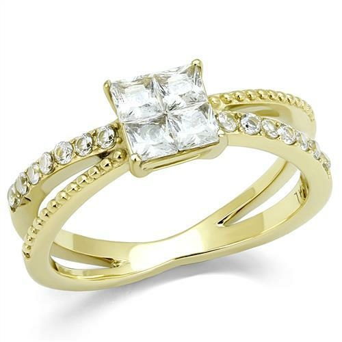 TK3181 IP Gold Stainless Steel Ring featuring AAA Grade clear CZ stone, showcasing its elegant design and luxurious finish.