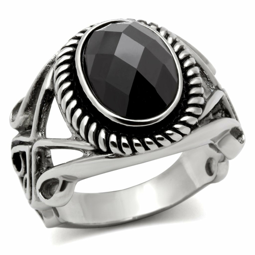 The TK322 High Polished Stainless Steel Ring is a stunning piece of jewelry that combines elegance and durability. Crafted from high-quality stainless steel, this ring features a high polished finish that gives it a sleek and modern look. The standout feature of this ring is its AAA Grade CZ center stone, which is designed to mimic the brilliance of a diamond while being more affordable. The center stone is set in a striking black diamond color, adding a touch of sophistication to the overall design.